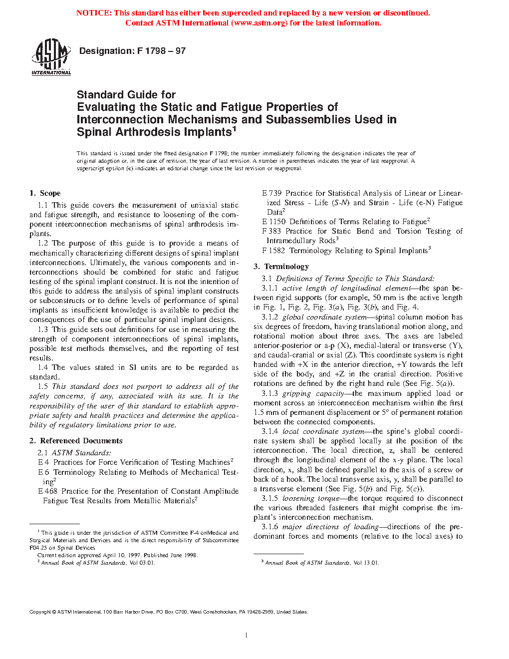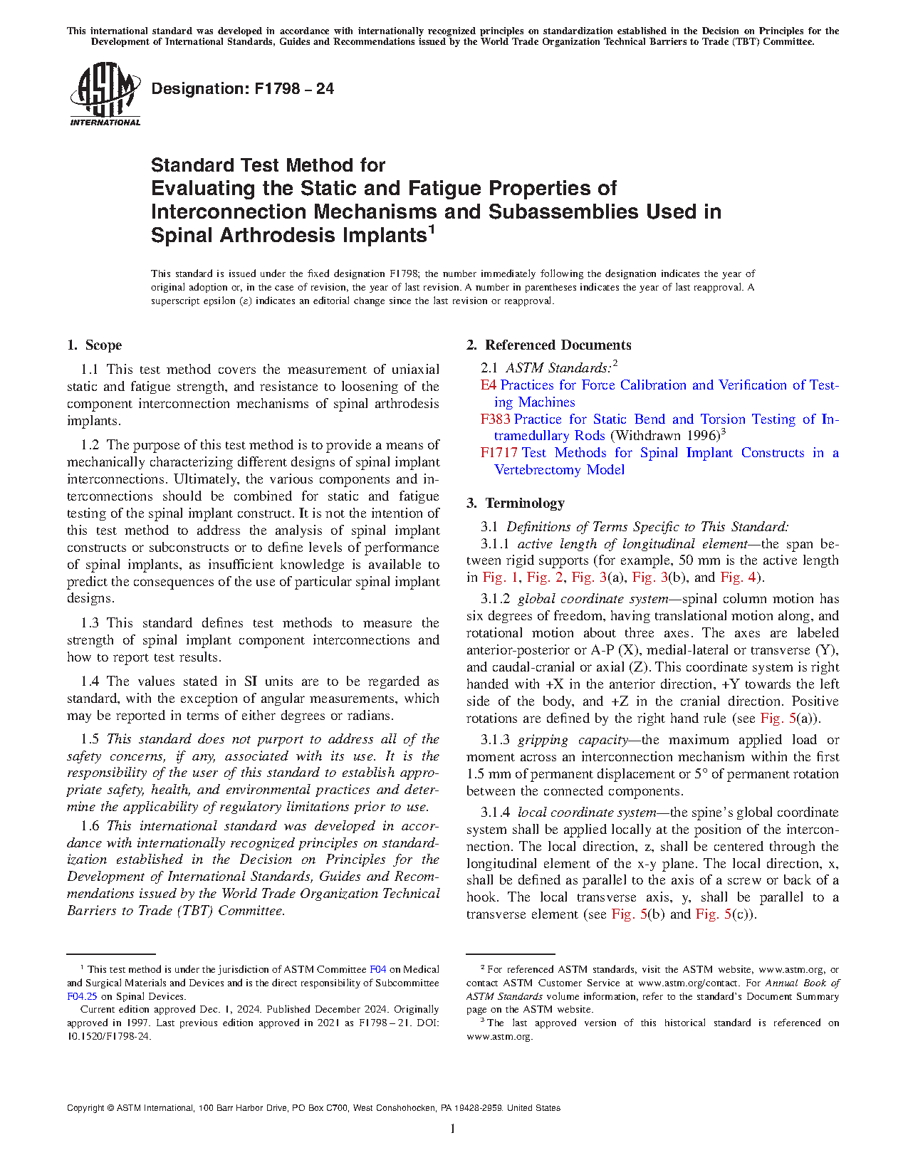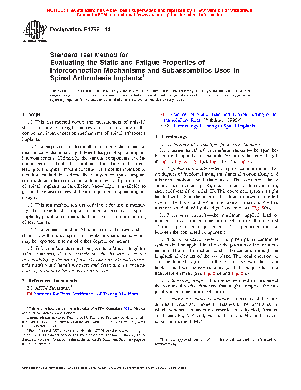 1.3 This test method sets out definitions for use in measuring the strength of component interconnections of spinal implants, possible test methods themselves, and the reporting of test results.