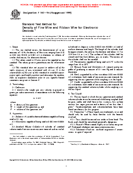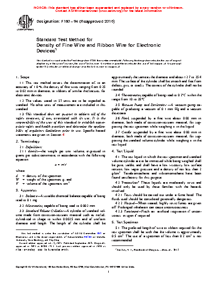 Standard Test Method for Density of Fine Wire and Ribbon Wire for Electronic Devices