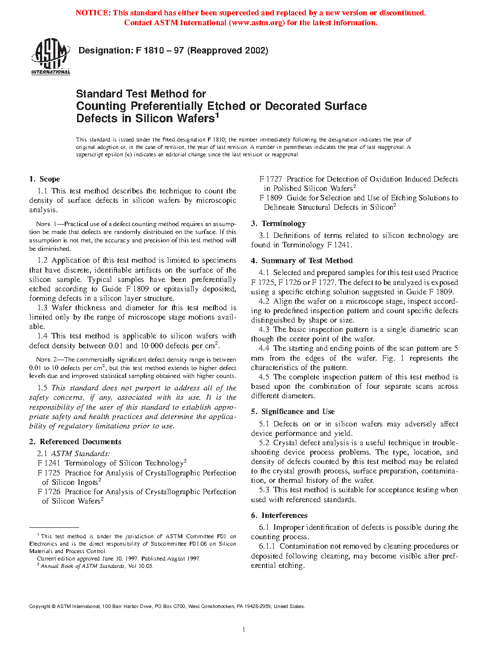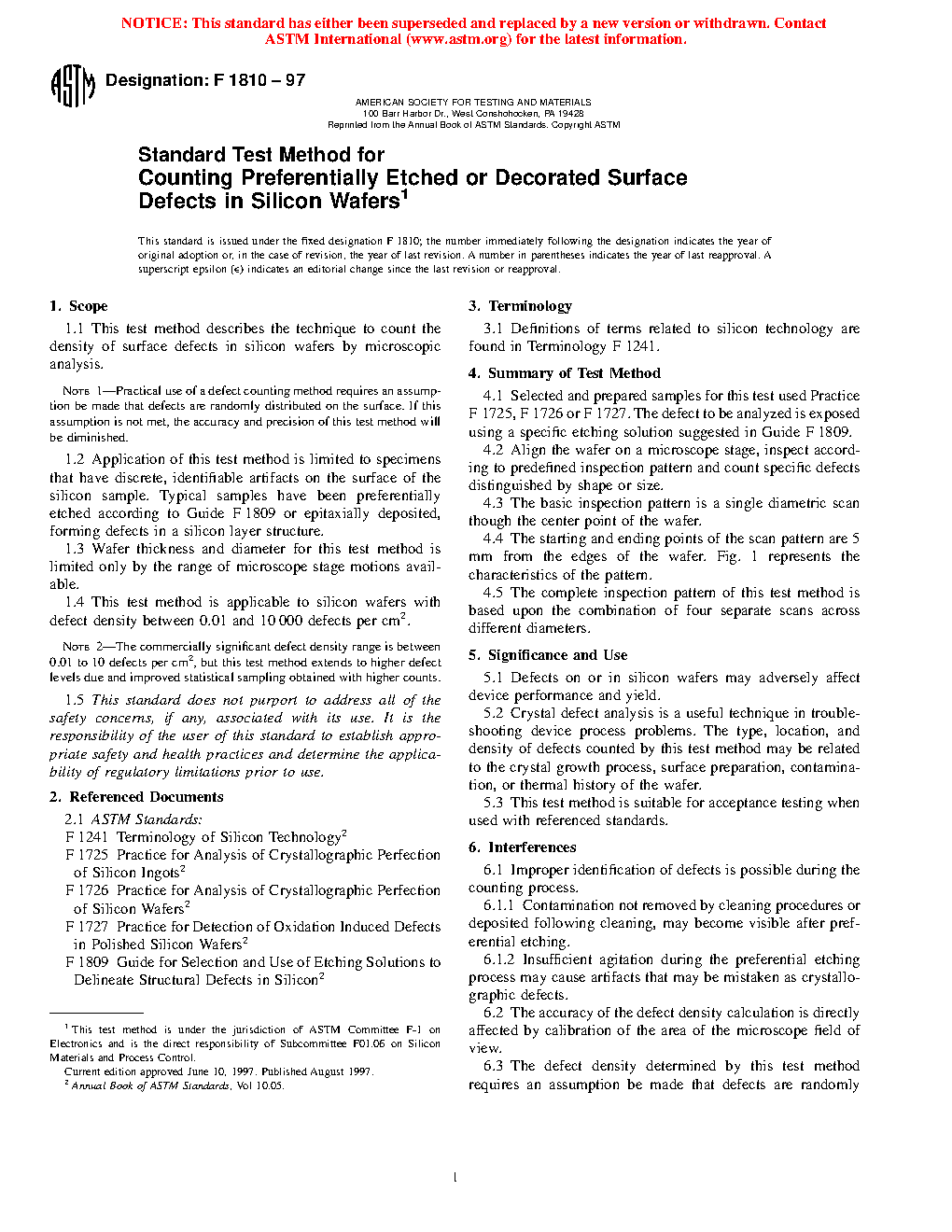 1.4 This test method is applicable to silicon wafers with defect density between 0.01 and 10 000 defects per cm2.