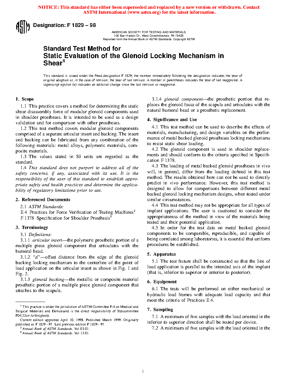 4.5 In order for the test data on metal or composite-backed anatomic glenoid components to be comparable, reproducible, and capable of being correlated among laboratories, it is essential that uniform procedures be established.