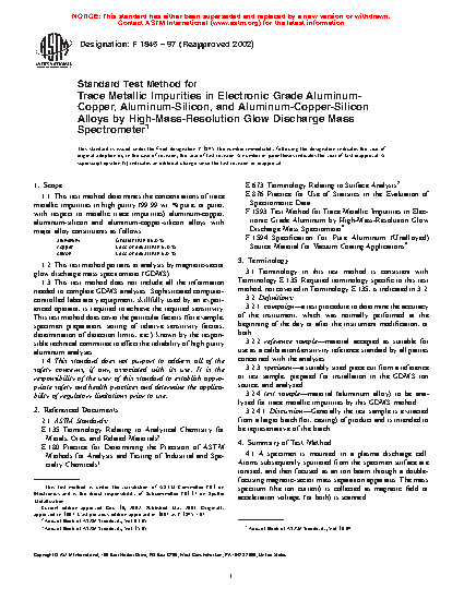 1.3 This test method does not include all the information needed to complete GDMS analyses. Sophisticated computer-controlled laboratory equipment, skillfully used by an experienced operator, is required to achieve the required sensitivity. This test method does cover the particular factors (for example, specimen preparations, setting of relative sensitivity factors, determination of detection limits, etc.) known by the responsible technical committee to effect the reliability of high purity aluminum analyses.