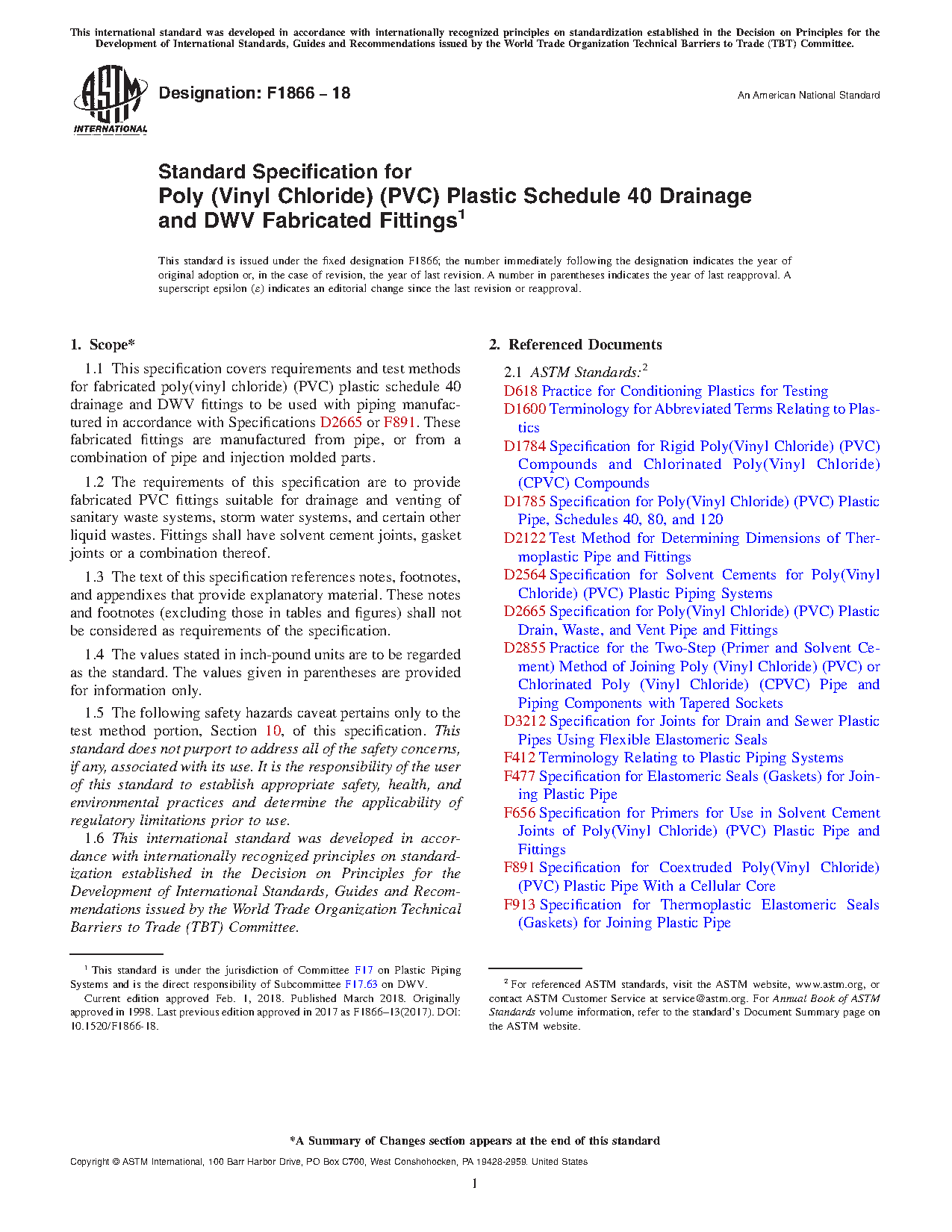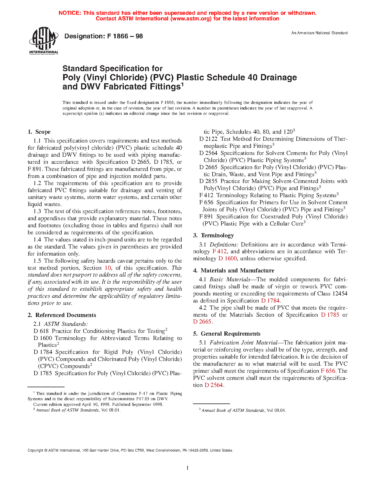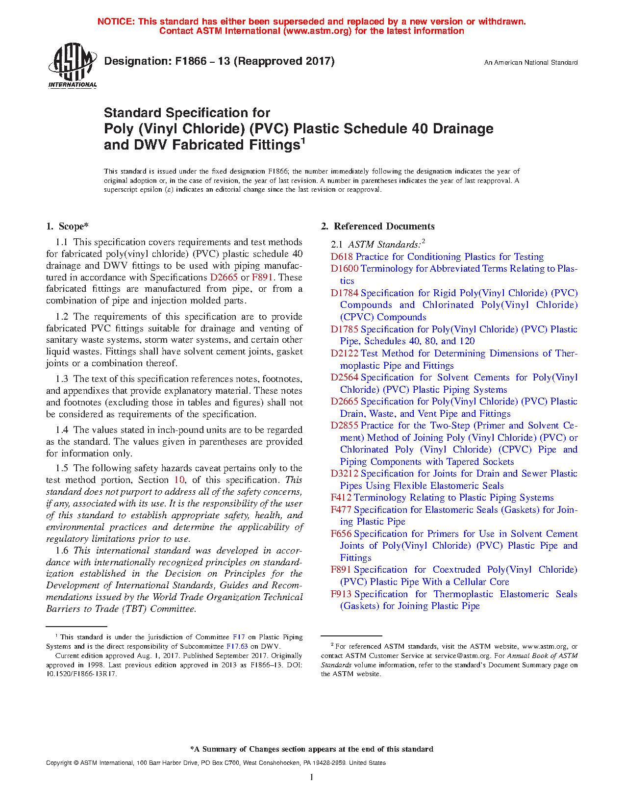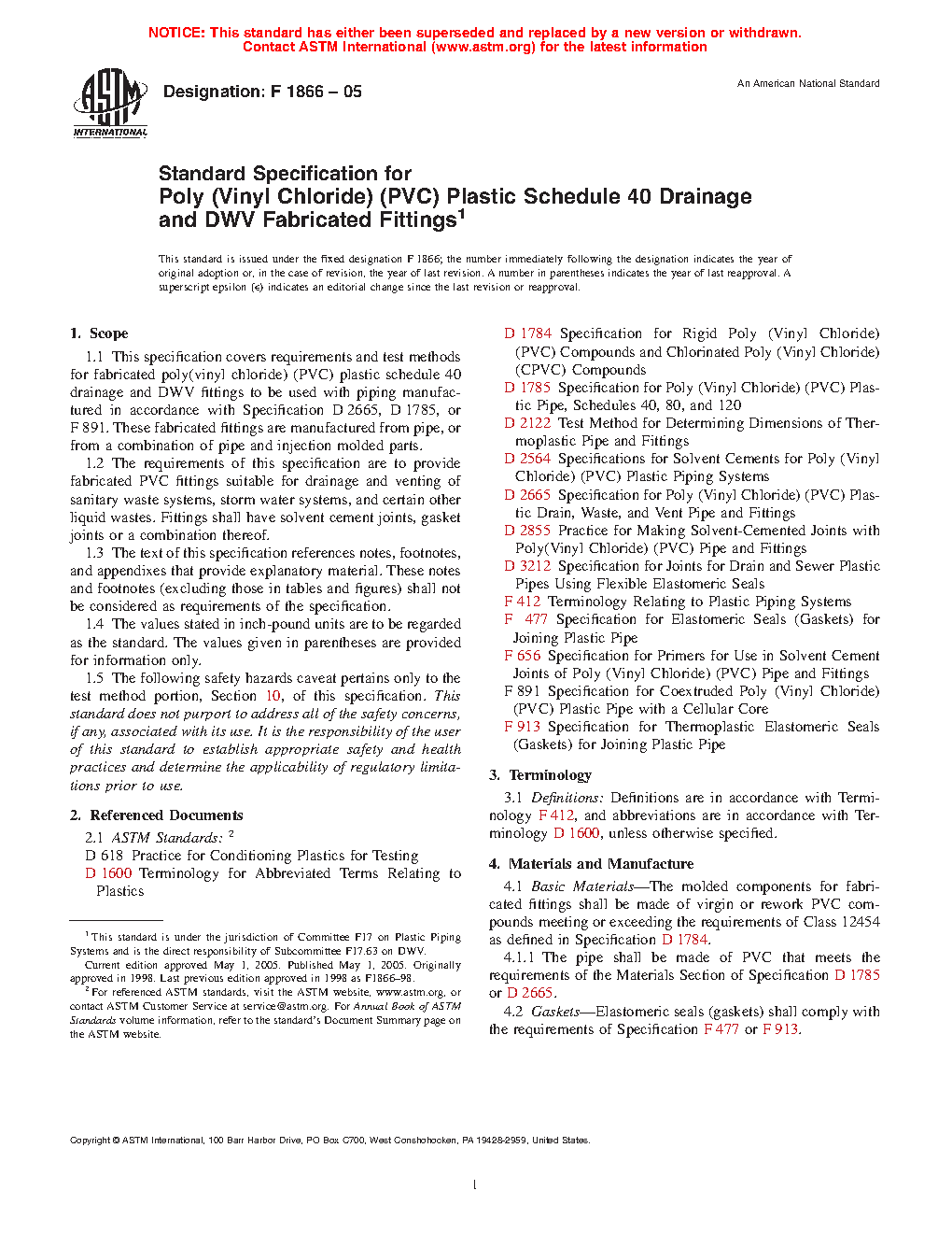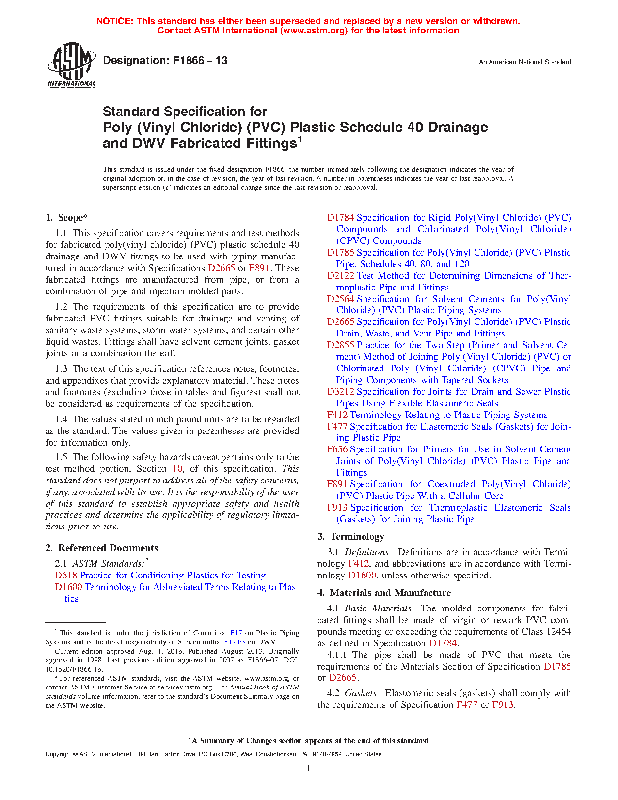 1.2 The requirements of this specification are to provide fabricated PVC fittings suitable for drainage and venting of sanitary waste systems, storm water systems, and certain other liquid wastes. Fittings shall have solvent cement joints, gasket joints or a combination thereof.