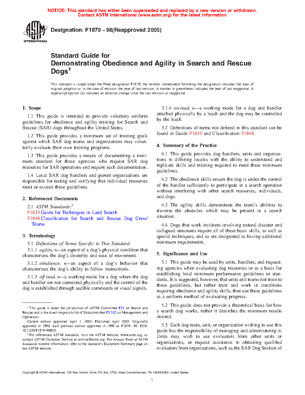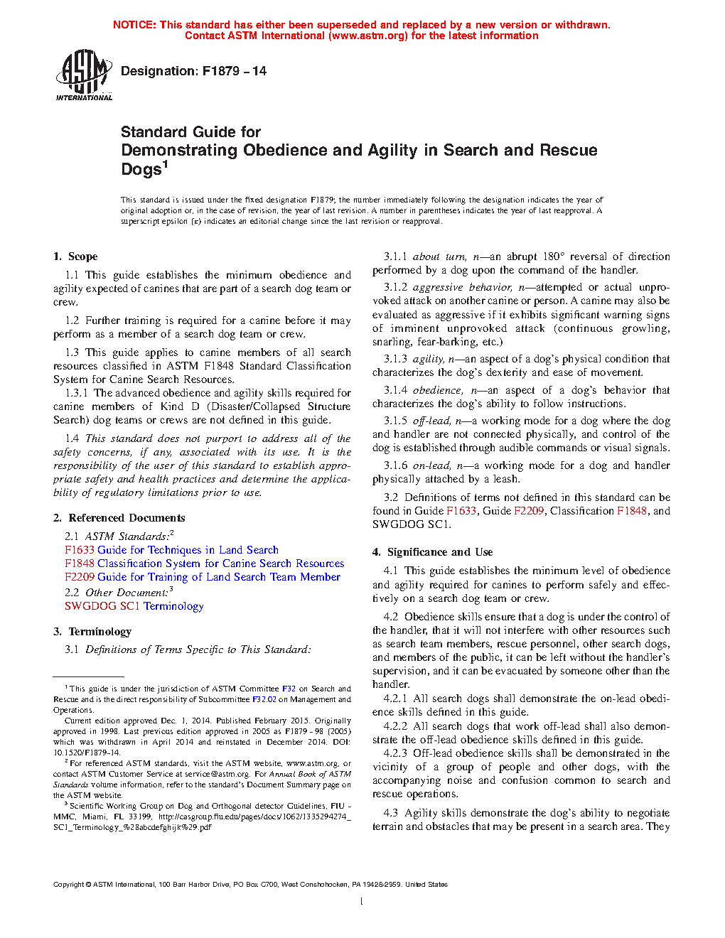 1.3 This guide applies to canine members of all search resources classified in ASTM F1848 Standard Classification System for Canine Search Resources.
