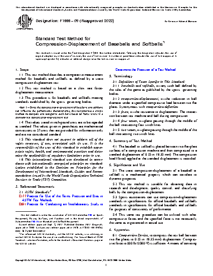 5.3 Sports associations can use compression-displacement standards in specifications for official baseballs and softballs standards in specifications for official baseballs and softballs for purposes of consistency of performance.