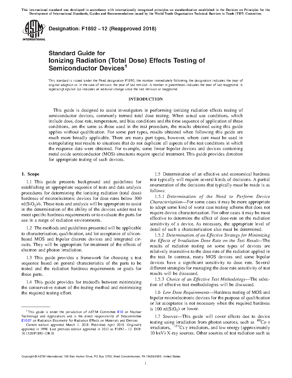 1.6 Low Dose RequirementsHardness testing of MOS and bipolar microelectronic devices for the purpose of qualification or lot acceptance is not necessary when the required hardness is 100 rd(SiO