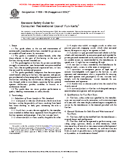 1.2 This guide is intended to reduce hazards, other than those inherent in the sport of fun-karting, to the users of fun-karts during normal intended use.