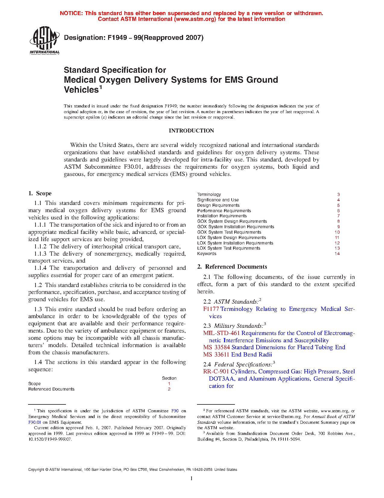 1.1 This standard covers minimum requirements for primary medical oxygen delivery systems for EMS ground vehicles used in the following applications: