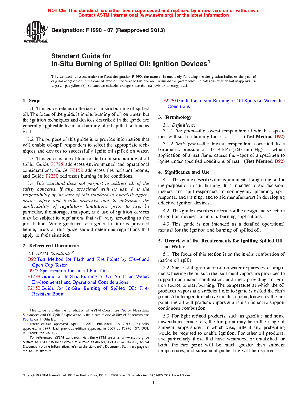 1.1 This guide relates to the use of in-situ burning of spilled oil. The focus of the guide is in-situ burning of oil on water, but the ignition techniques and devices described in the guide are generally applicable to in-situ burning of oil spilled on land as well.