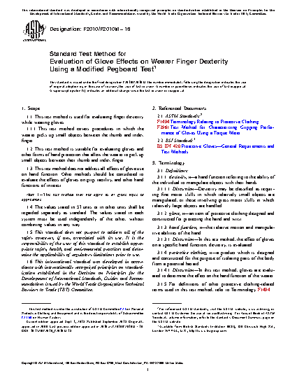 1.2 This test method is suitable for evaluating gloves and other forms of hand protection that allow the wearer to pick up small objects between their thumb and index finger.