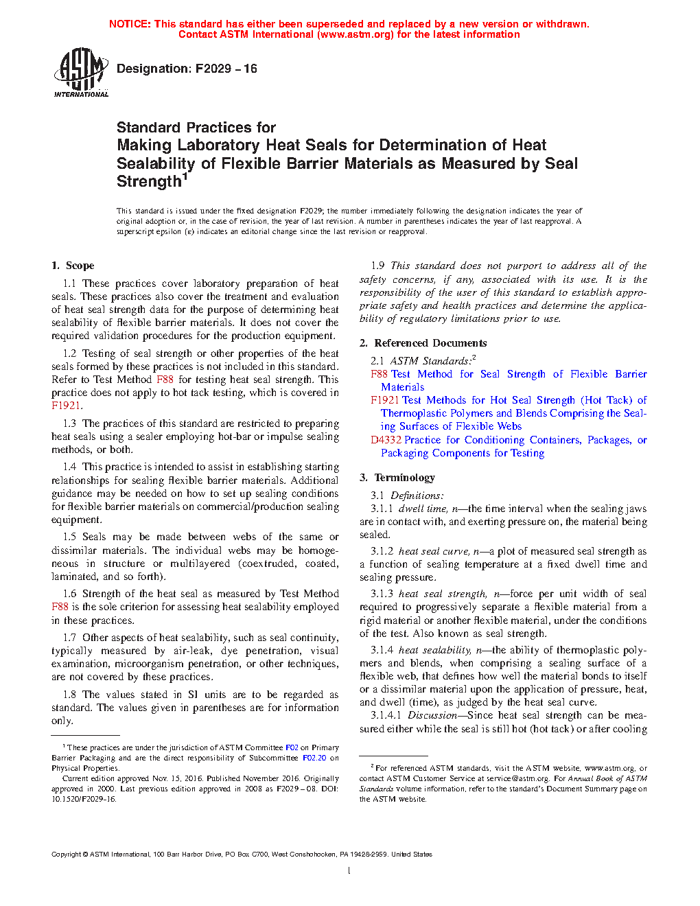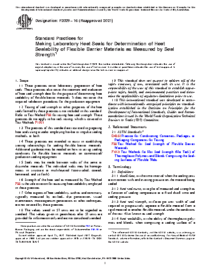 1.1 These practices cover laboratory preparation of heatseals and the treatment and evaluation of heatseal strength data for the purpose of determining heatsealability of flexible barrier materials.