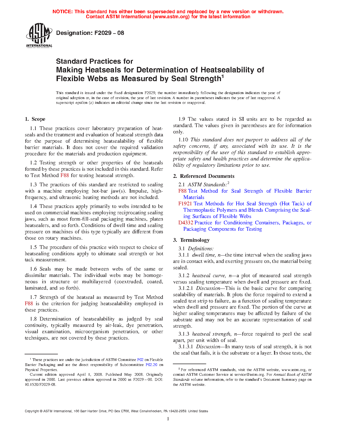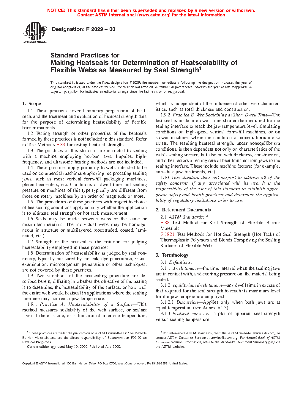 1.9 Two variations of the heatsealing procedure are described herein, differing in whether the objective of the testing is to determine, the heatsealability of the surface, or how well the entire web would heatseal in applications where the sealing interface may not reach jaw temperature.