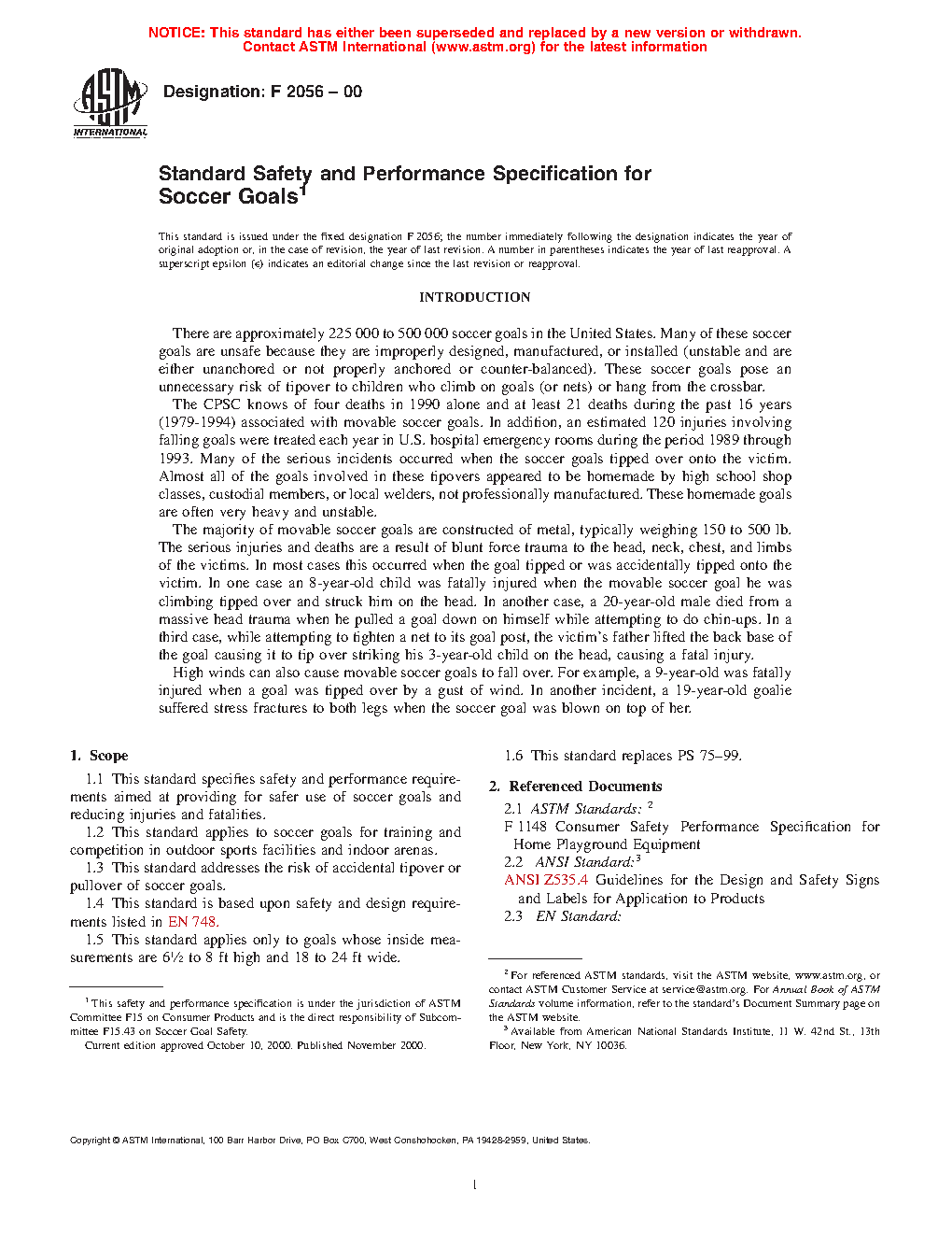 Standard Safety and Performance Specification for Soccer Goals (Withdrawn 2018)