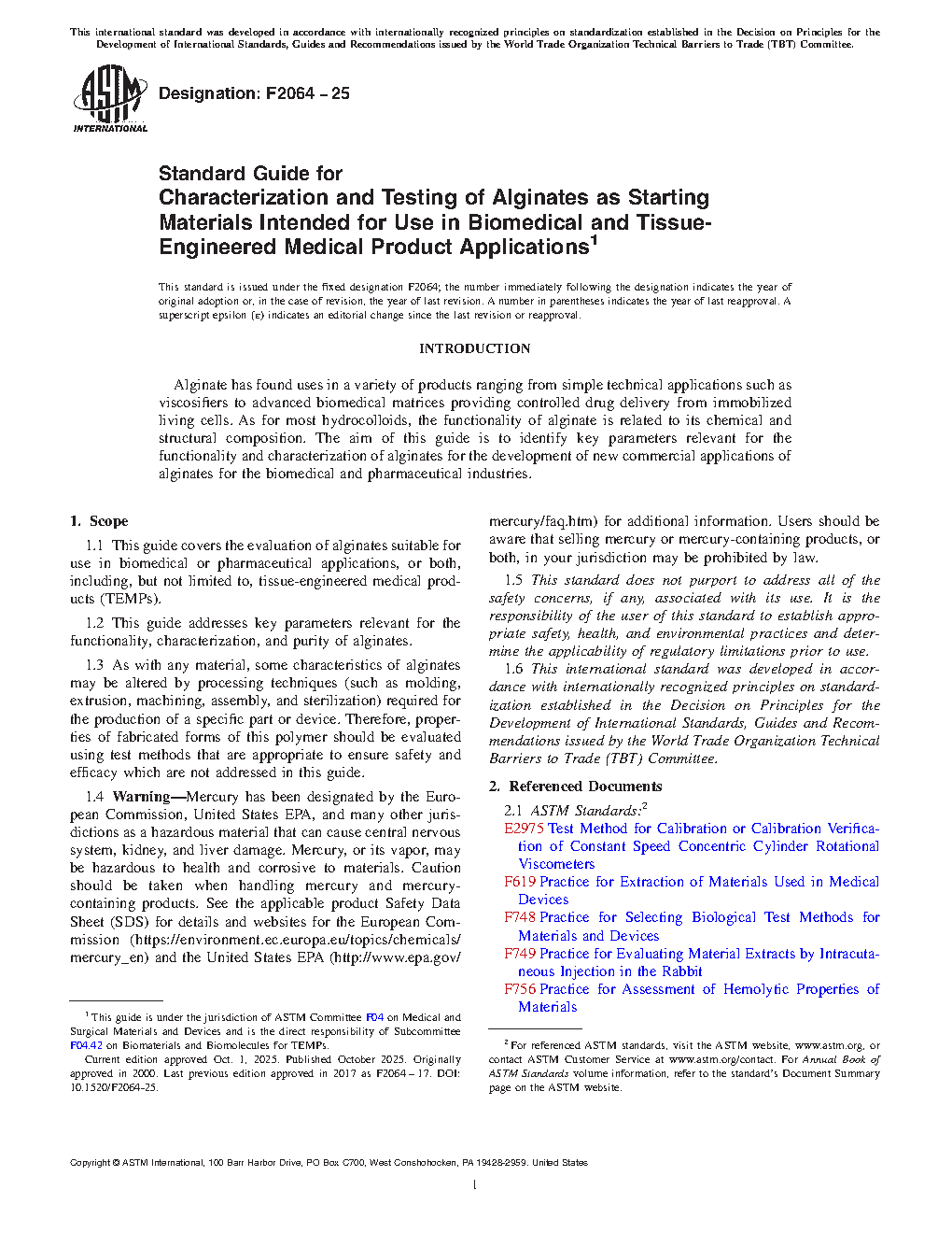 1.1 This guide covers the evaluation of alginates suitable for use in biomedical or pharmaceutical applications, or both, including, but not limited to, Tissue Engineered Medical Products (TEMPs).
