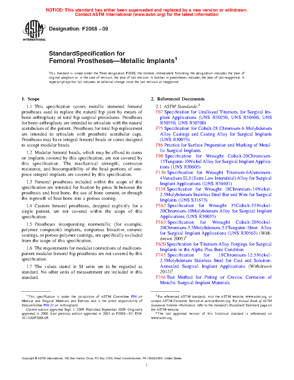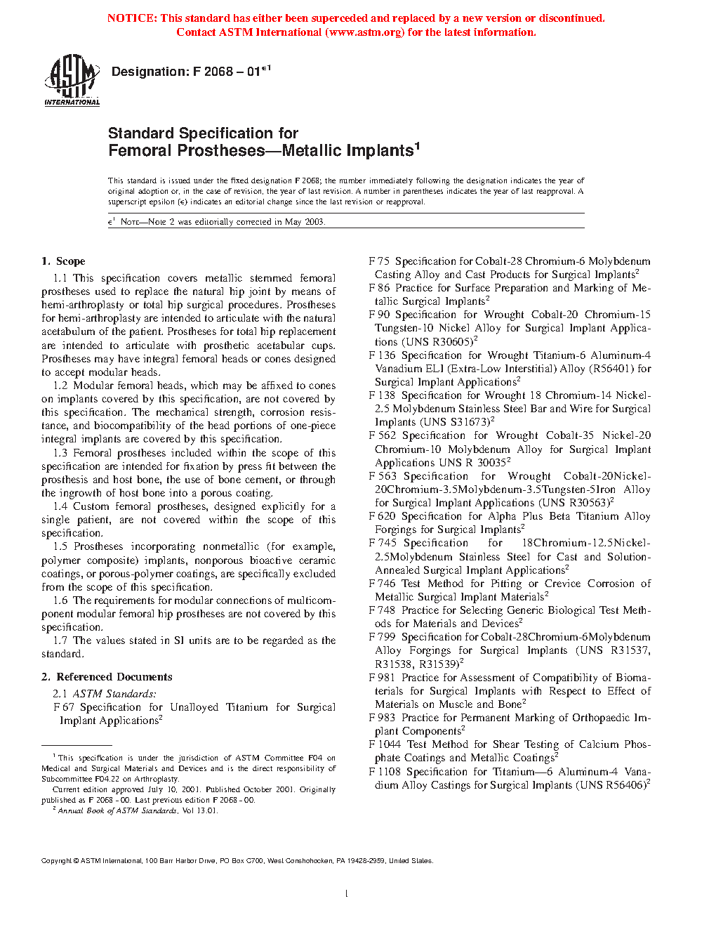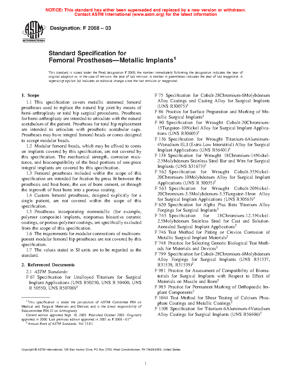 1.6 The requirements for modular connections of multicomponent modular femoral hip prostheses are not covered by this specification.