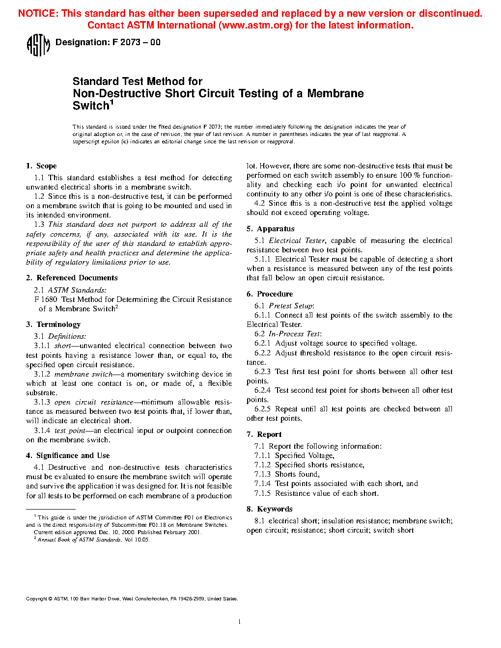 1.1 This standard establishes a test method for detecting unwanted electrical shorts in a membrane switch.
