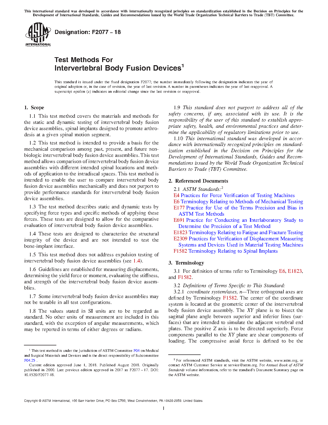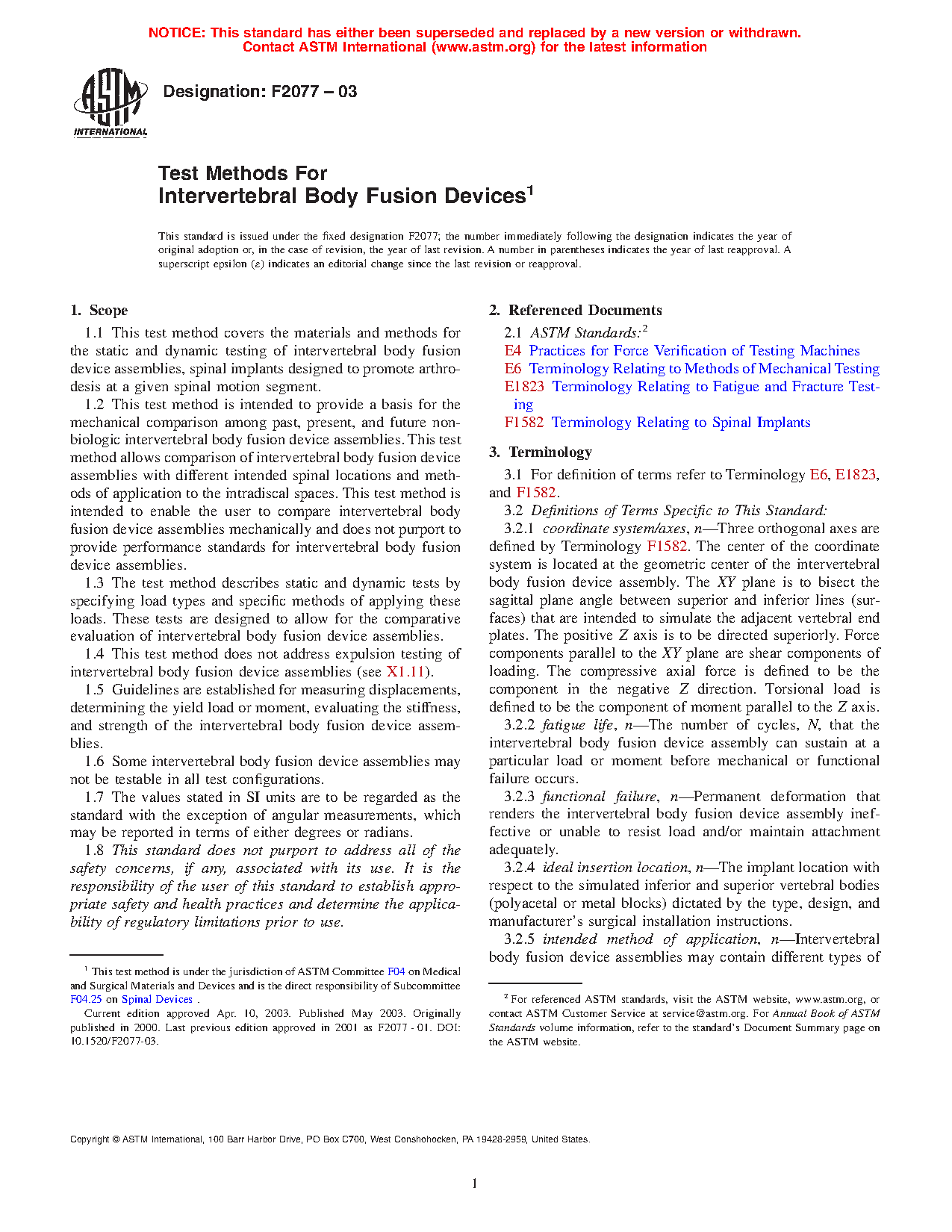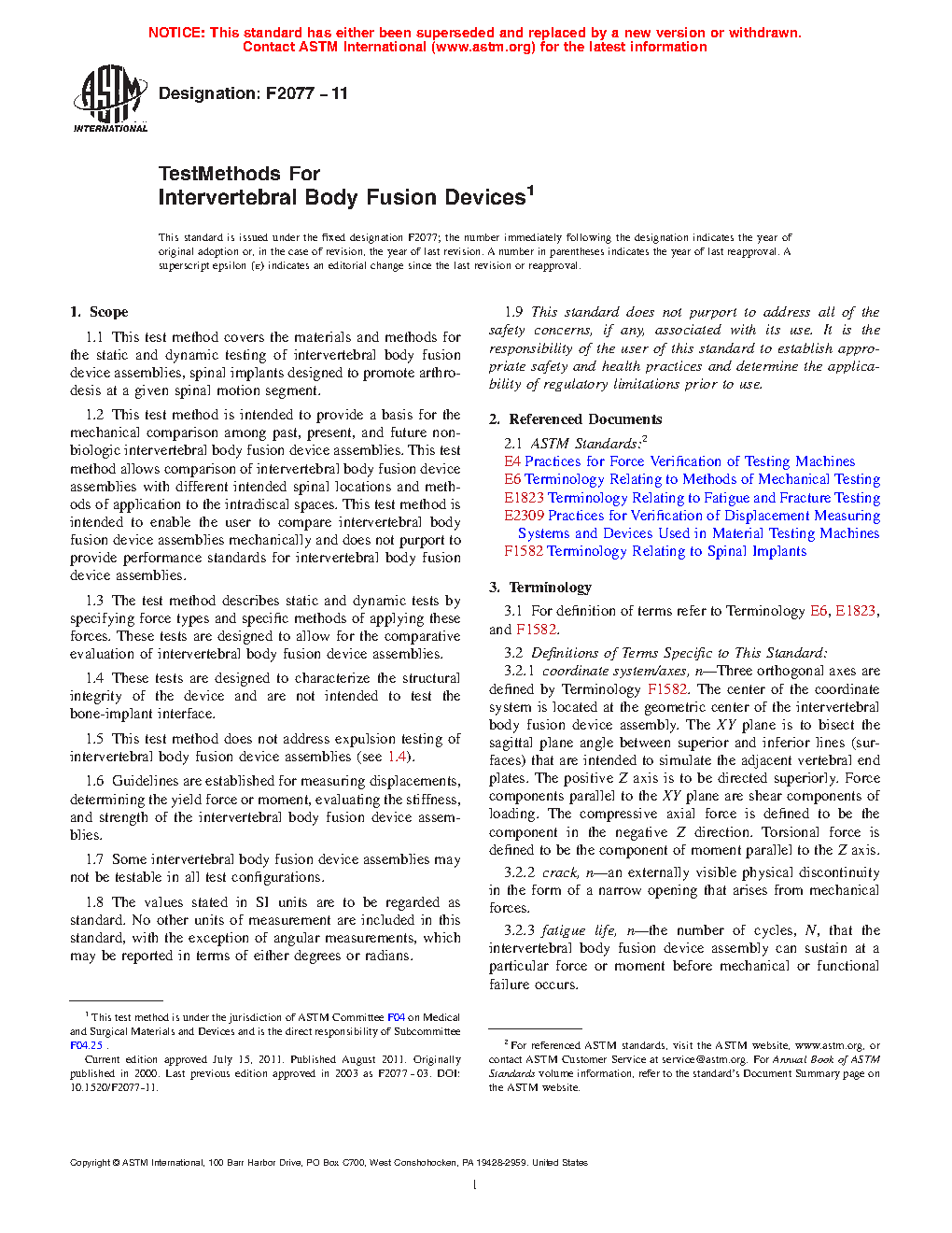 1.3 The test method describes static and dynamic tests by specifying force types and specific methods of applying these forces. These tests are designed to allow for the comparative evaluation of intervertebral body fusion device assemblies.