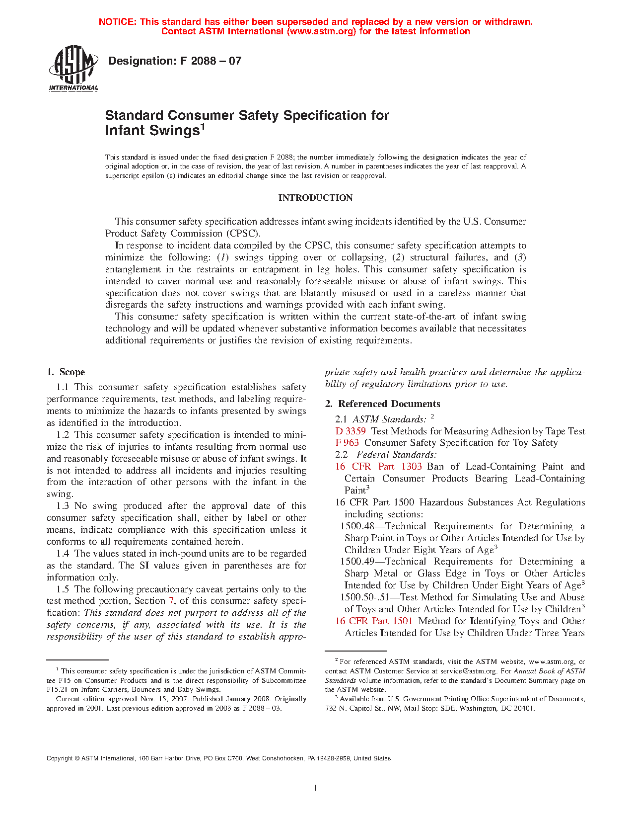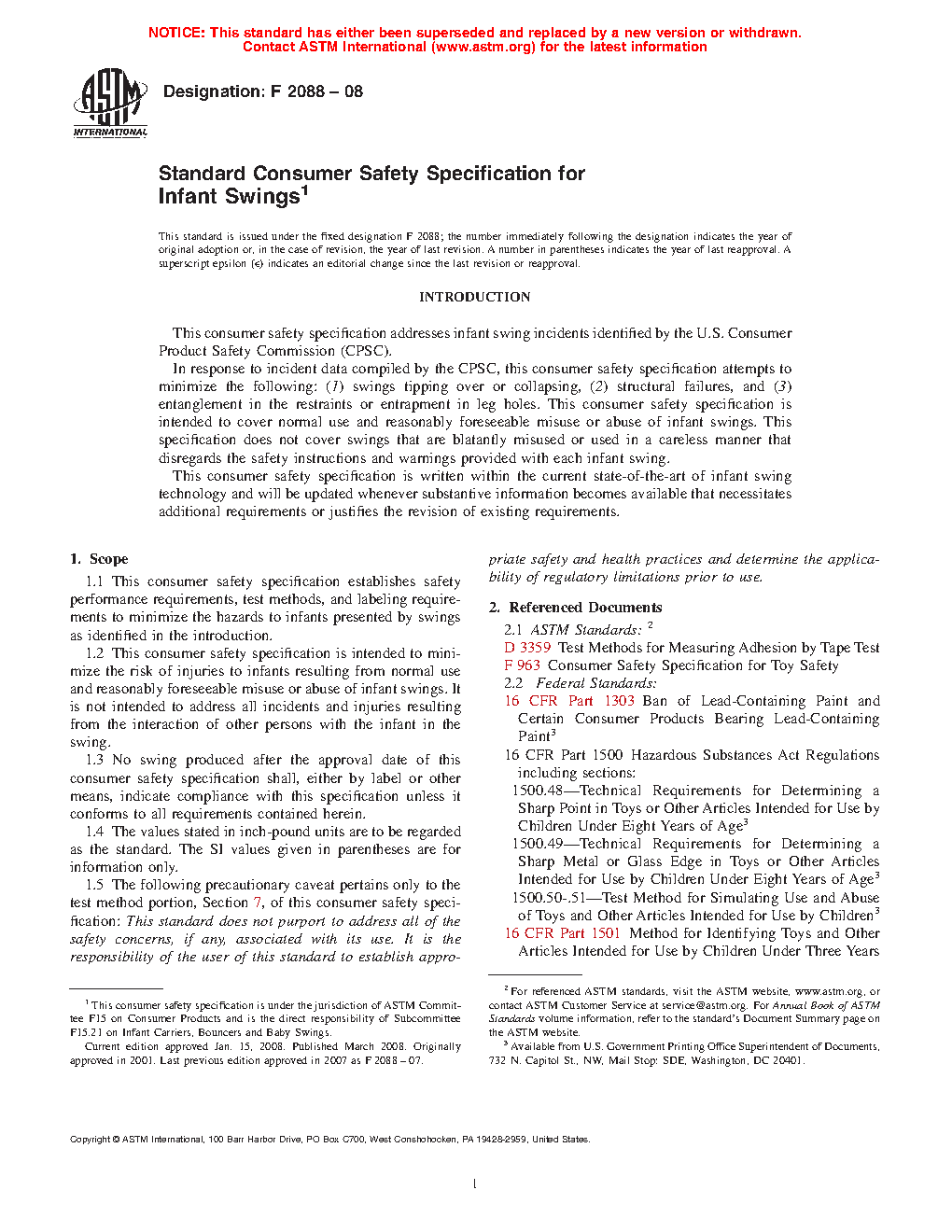 1.3 No swing produced after the approval date of this consumer safety specification shall, either by label or other means, indicate compliance with this specification unless it conforms to all requirements contained herein.