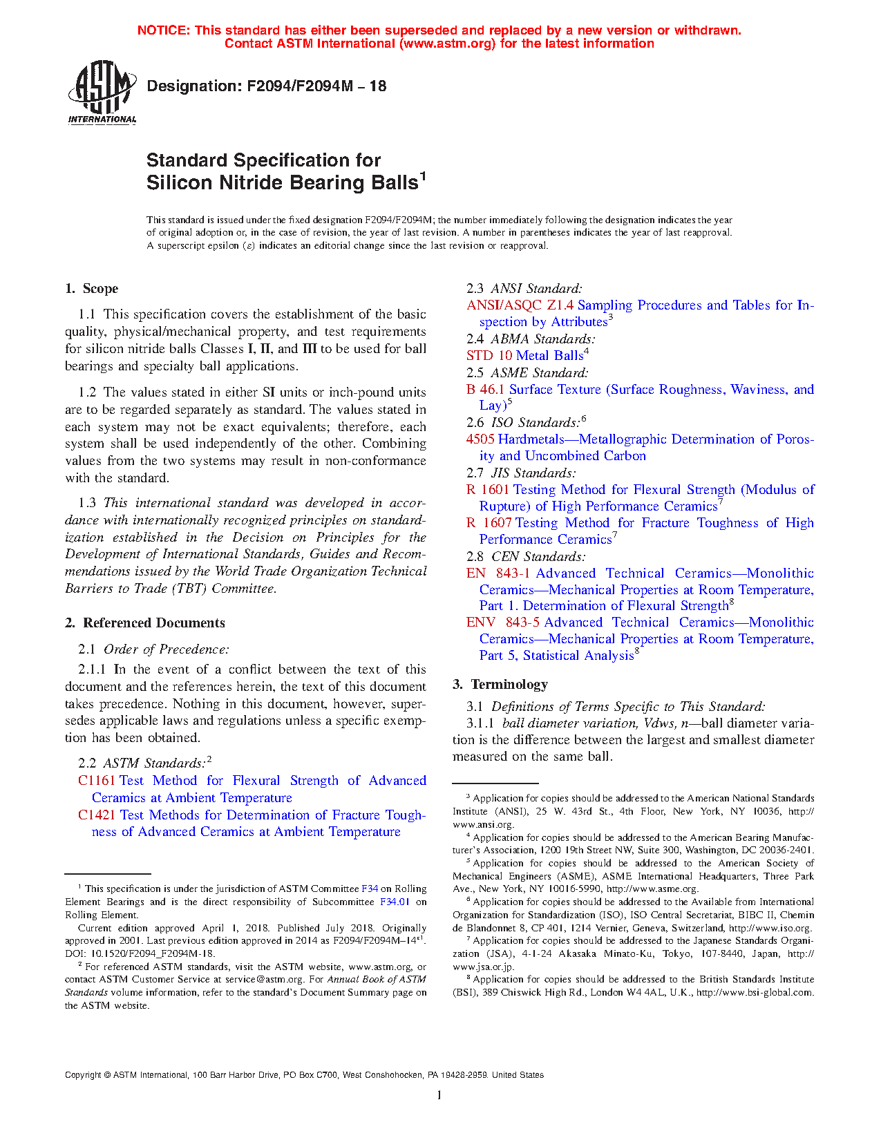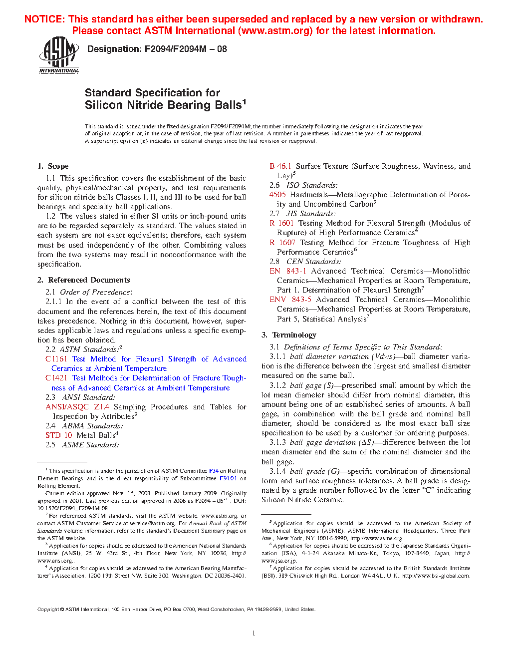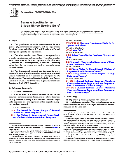 1.1 This specification covers the establishment of the basic quality, physical/mechanical property, and test requirements for silicon nitride balls Classes I, II, and III to be used for ball bearings and specialty ball applications.