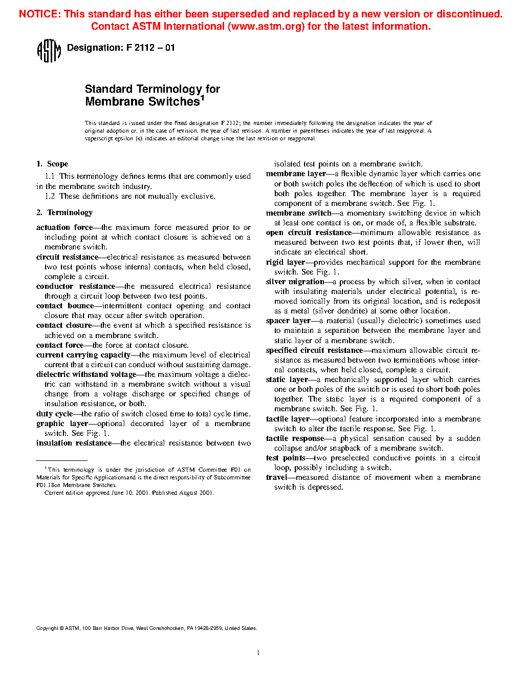 1.1 This terminology defines terms that are commonly used in the membrane switch industry.