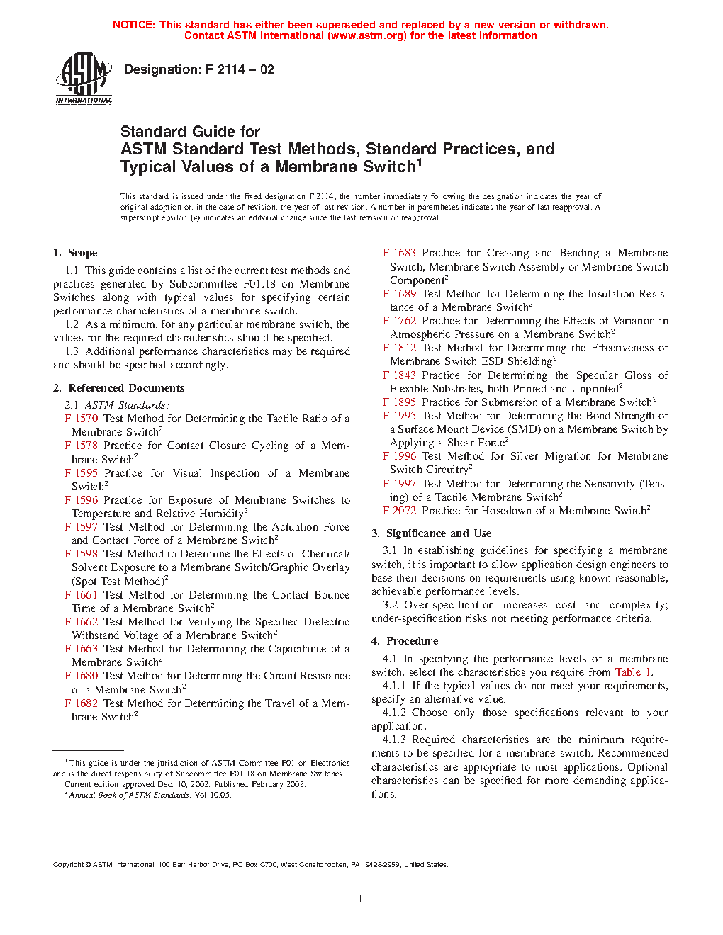 1.2 As a minimum, for any particular membrane switch, the values for the required characteristics should be specified.