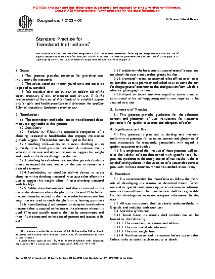 1.1 This practice provides guidance for providing user instructions for treestands.