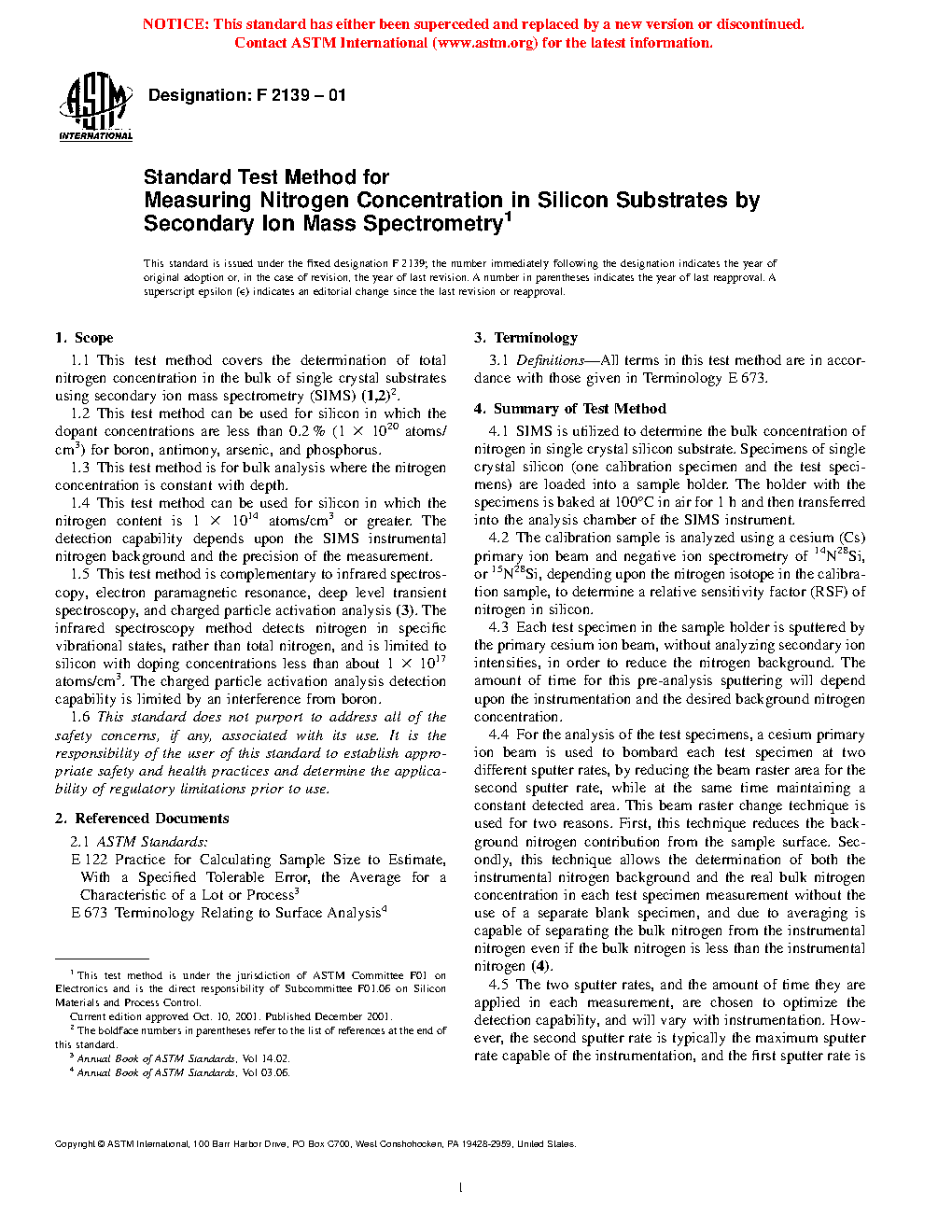 1.4 This test method can be used for silicon in which the nitrogen content is 1 x 1014 atoms/cm3 or greater. The detection capability depends upon the SIMS instrumental nitrogen background and the precision of the measurement.