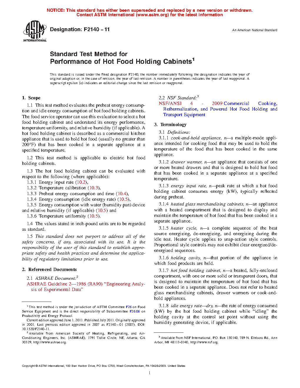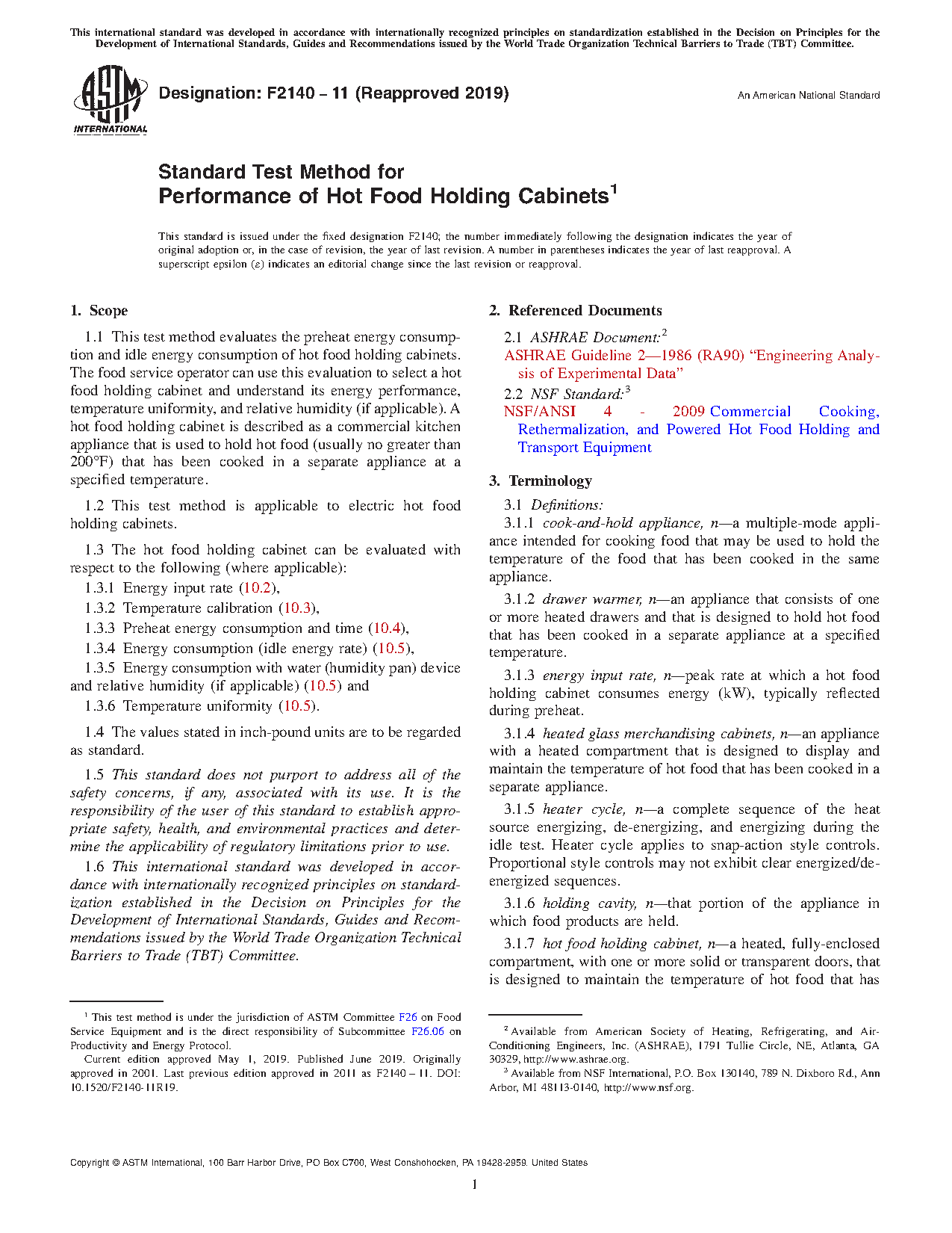1.2 This test method is applicable to electric hot food holding cabinets.