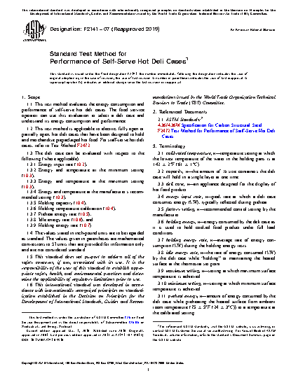 1.1 This test method evaluates the energy consumption and performance of hot deli cases. The food service operator can use this evaluation to select a deli case and understand its energy consumption and performance.
