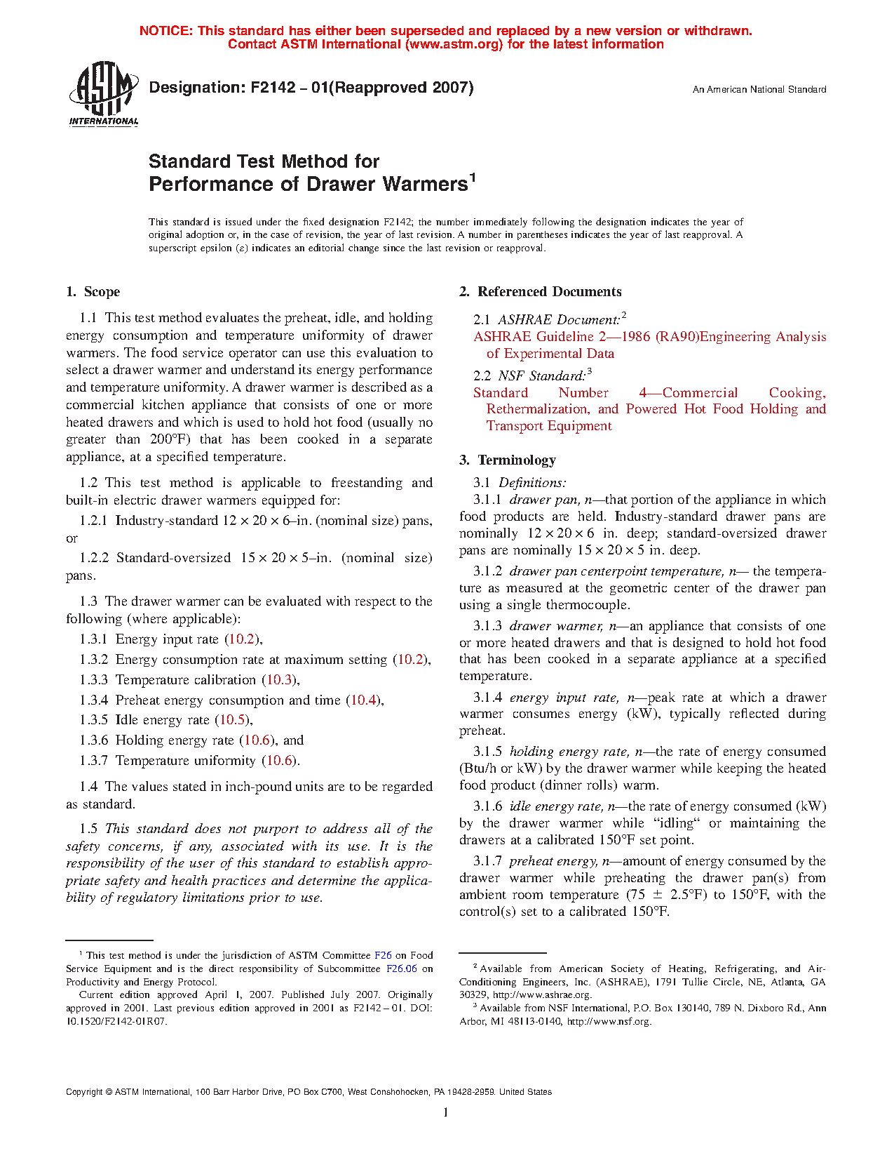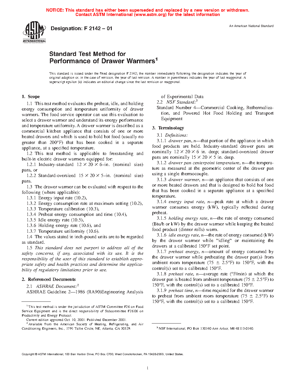 1.2 This test method is applicable to freestanding and built-in electric drawer warmers equipped for: