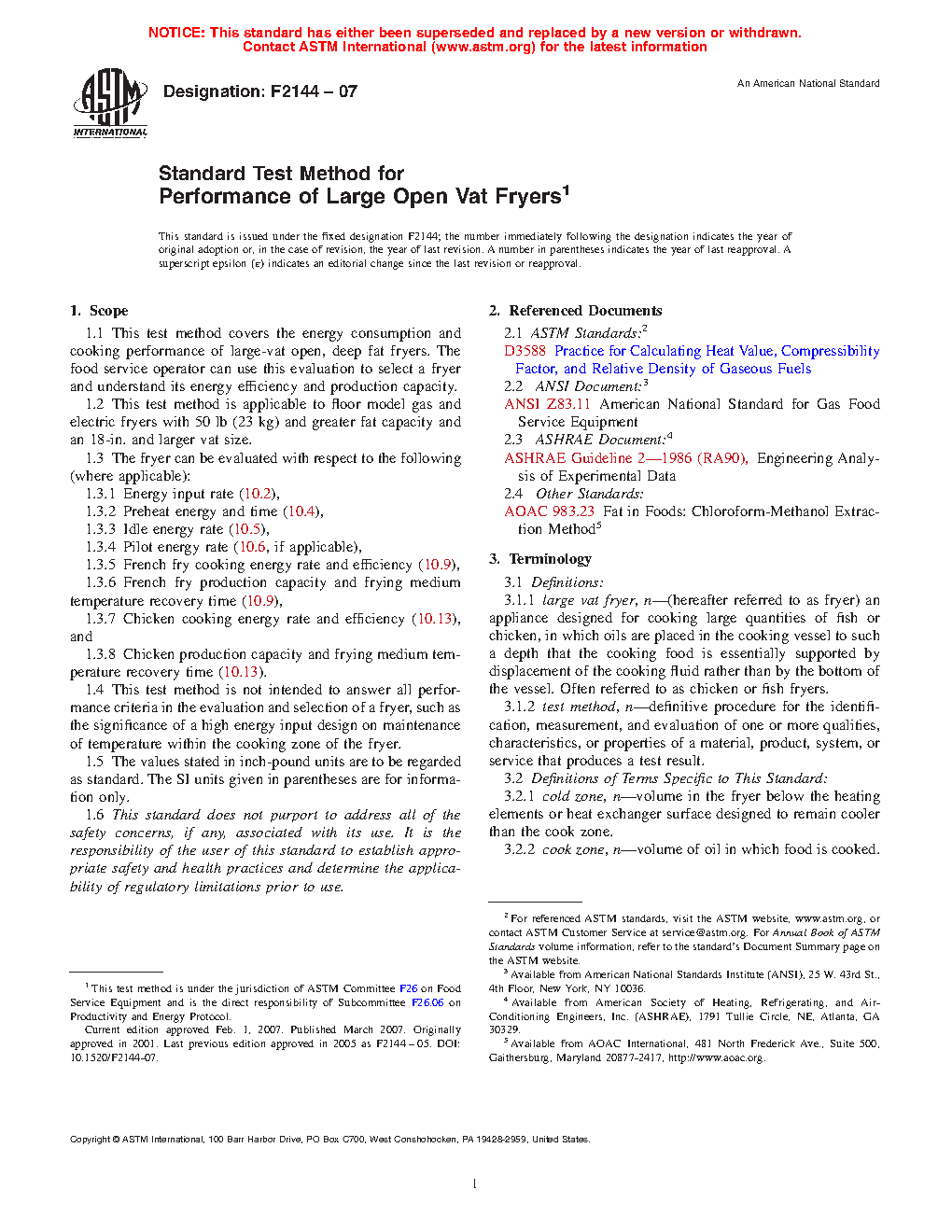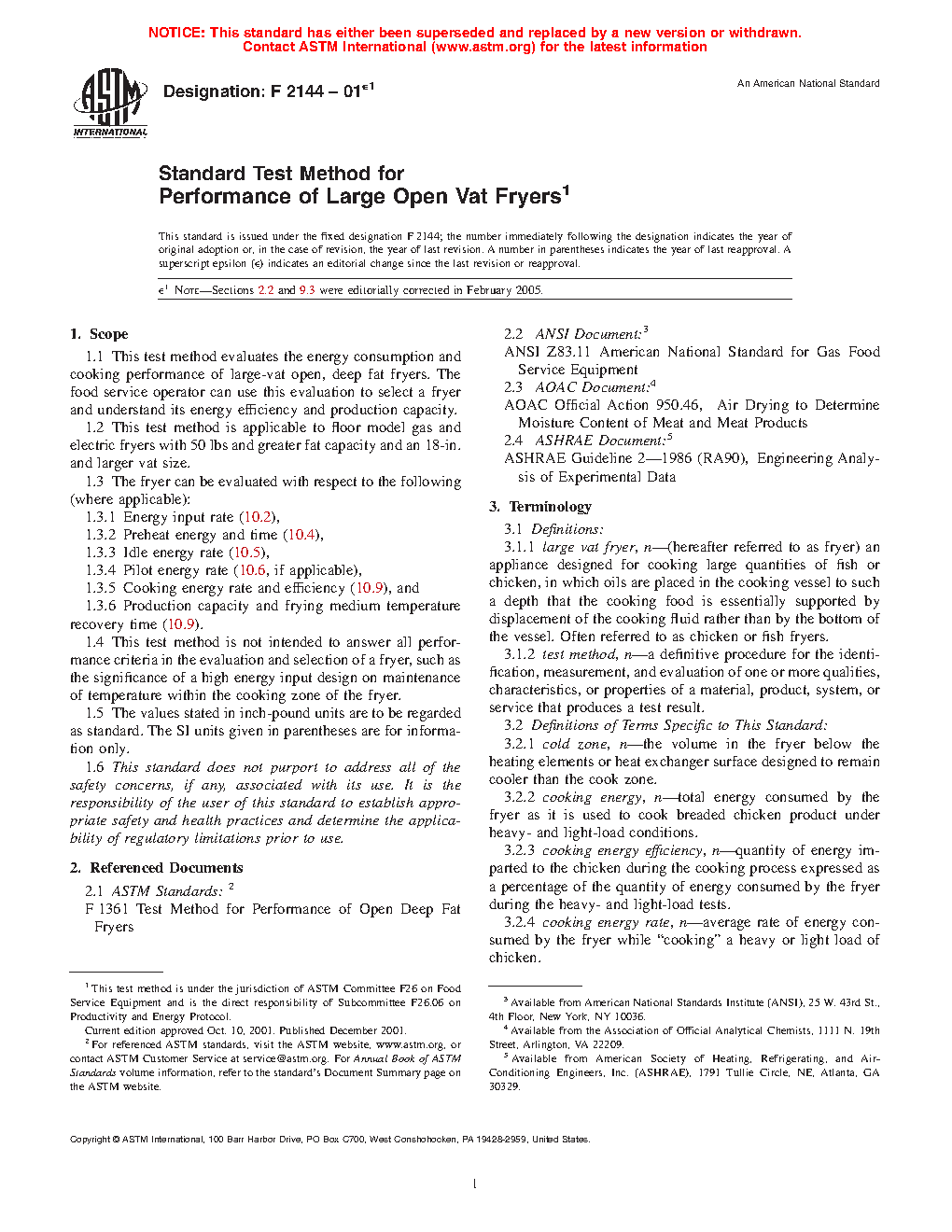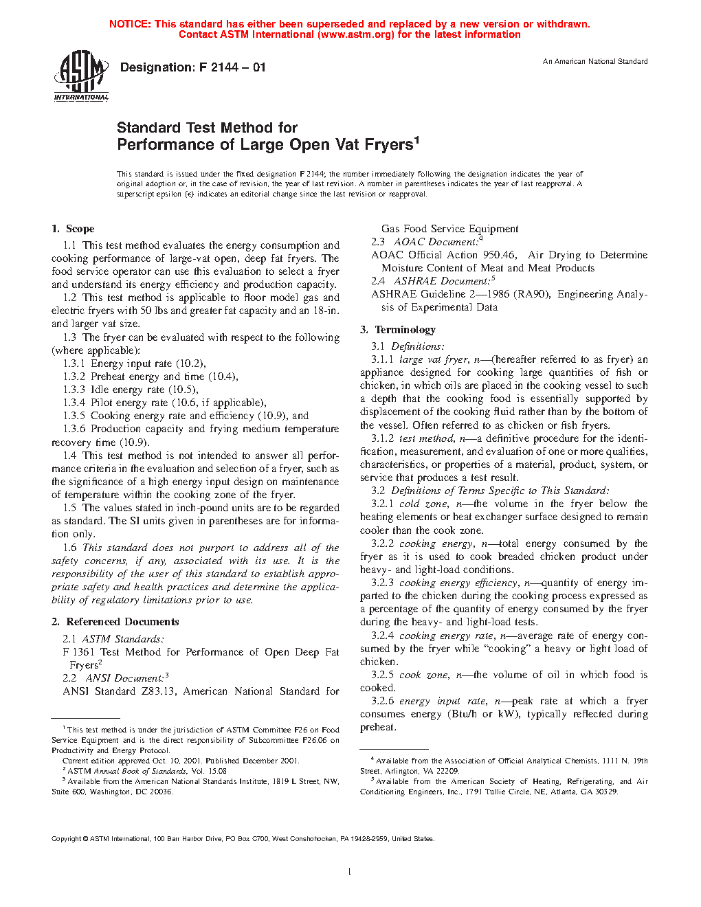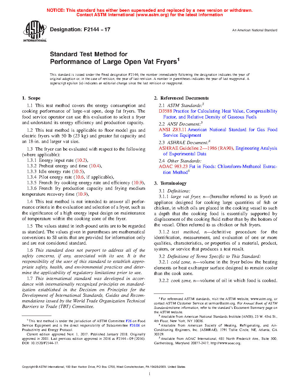 1.4 This test method is not intended to answer all performance criteria in the evaluation and selection of a fryer, such as the significance of a high energy input design on maintenance of temperature within the cooking zone of the fryer.