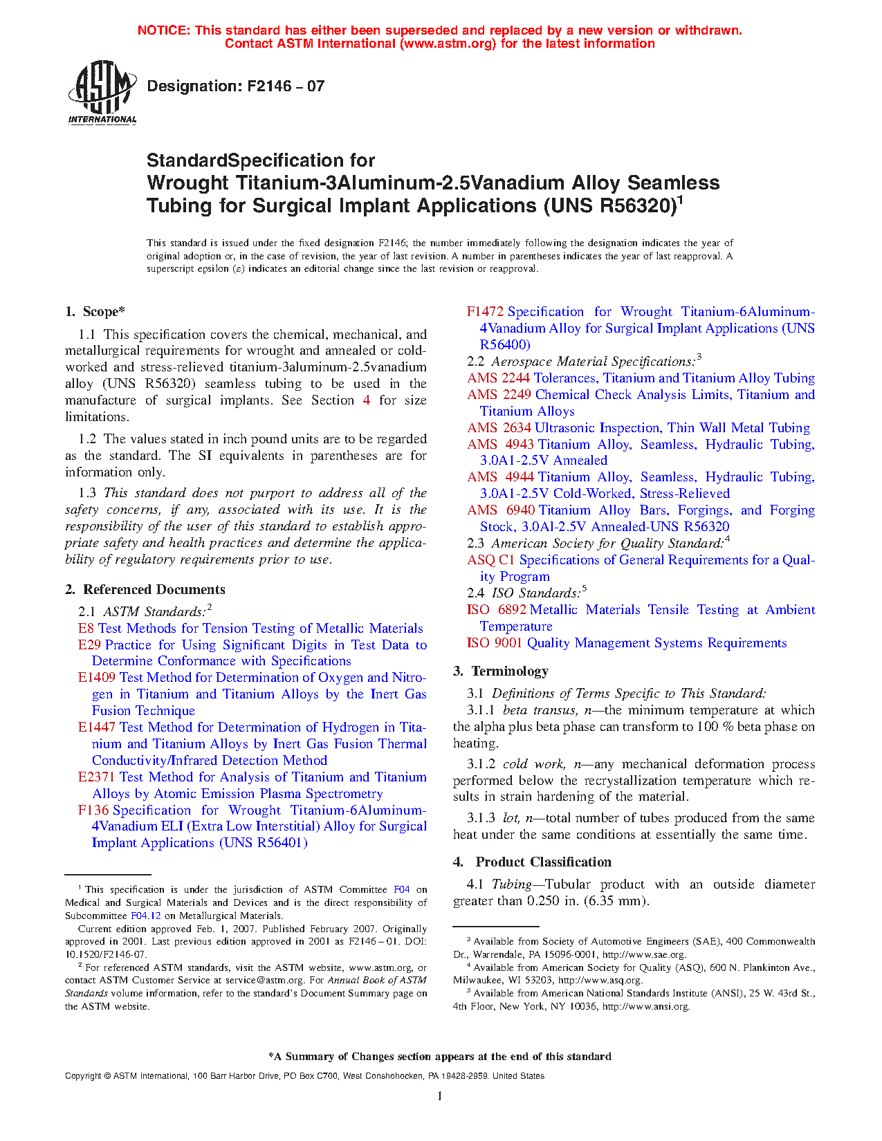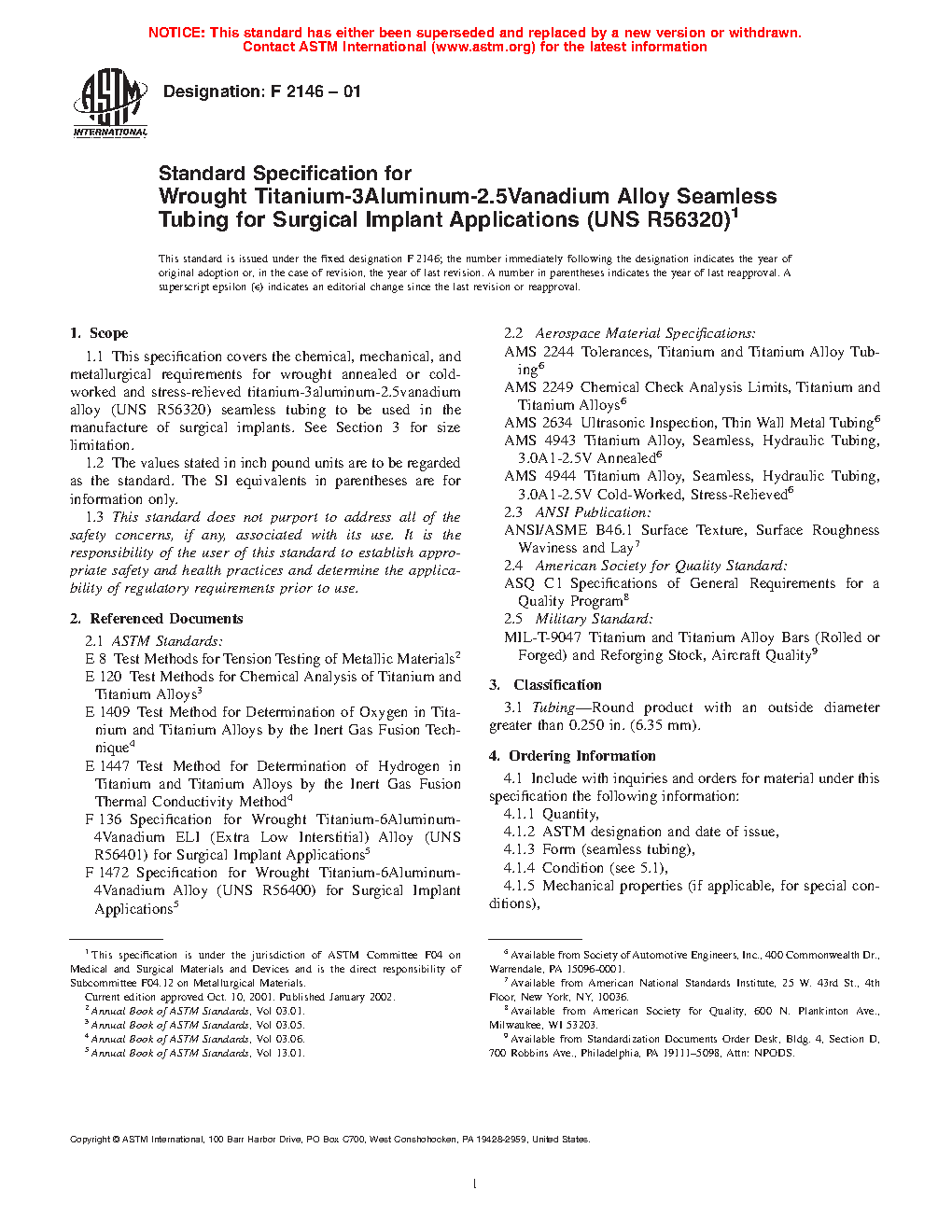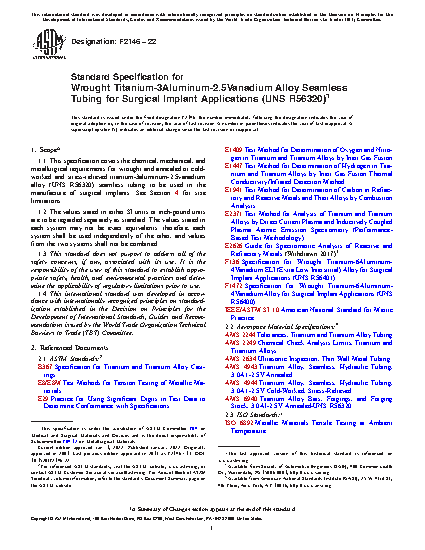 Standard Specification for Wrought Titanium-3Aluminum-2.5Vanadium Alloy Seamless Tubing for Surgical Implant Applications (UNS R56320)