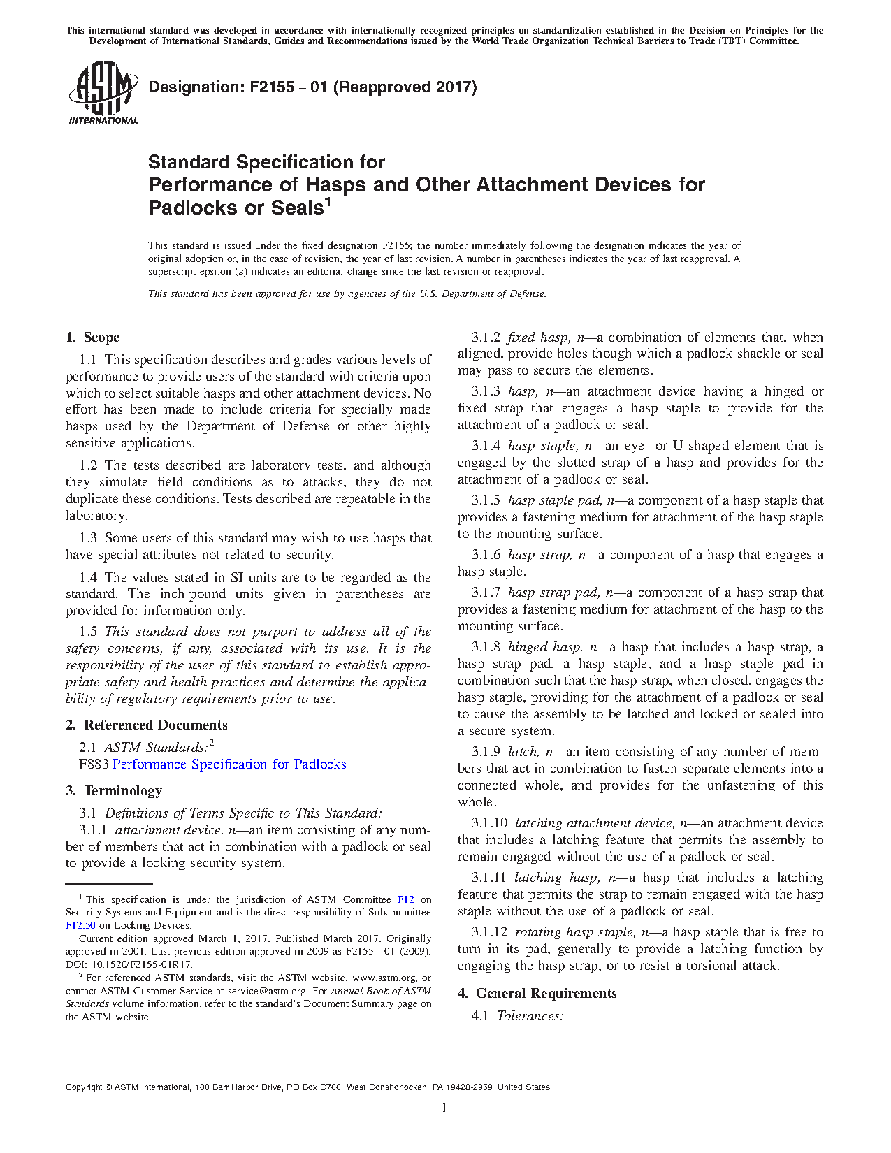 1.3 Some users of this standard may wish to use hasps that have special attributes not related to security.