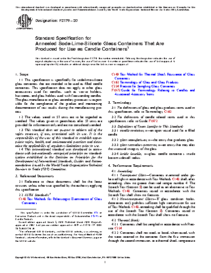 1.1 This specification covers the minimum requirements for annealed soda-lime-silicate glass containers when the producer knows the containers are to be used as candle containers.