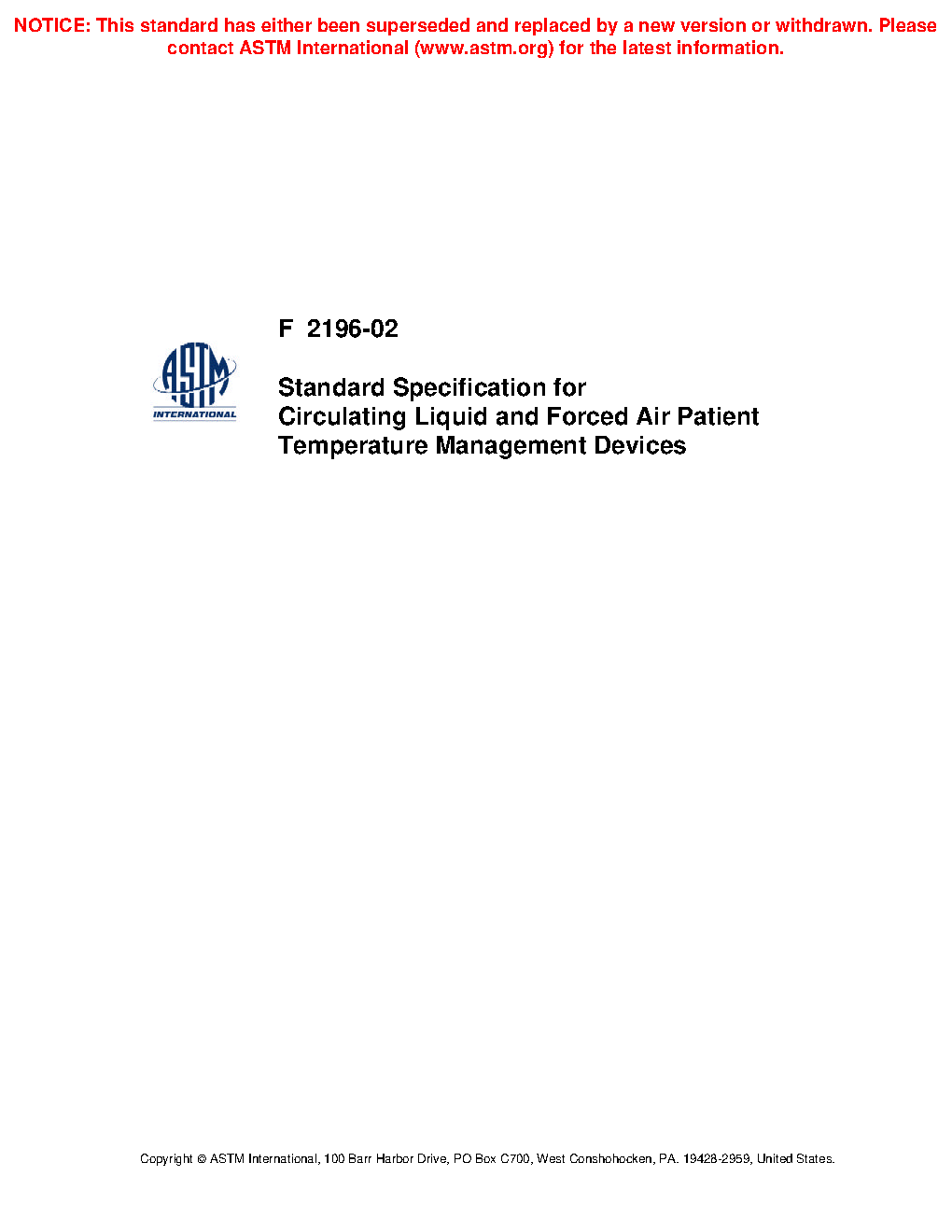 Standard Specification for Circulating Liquid and Forced Air Patient Temperature Management Devices (Withdrawn 2011)