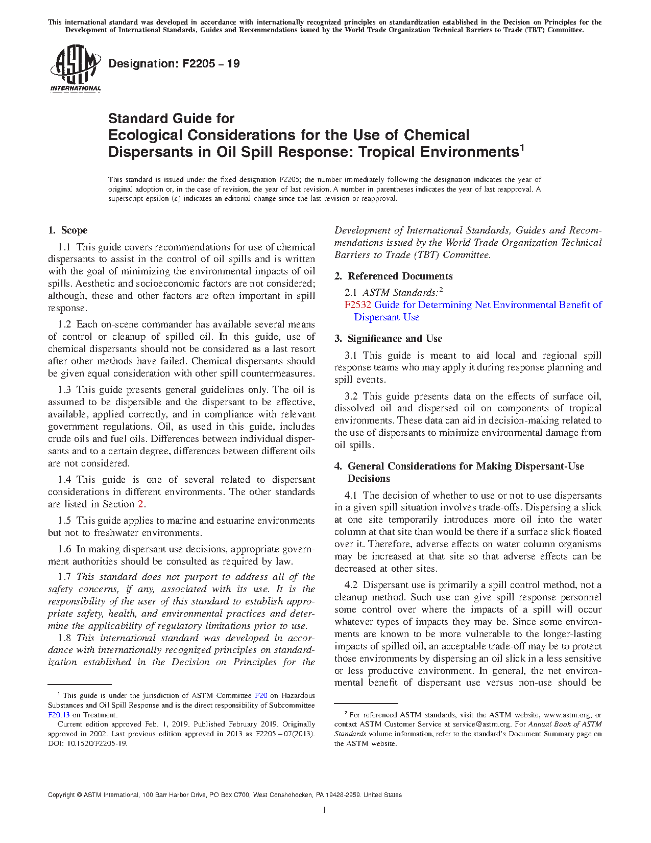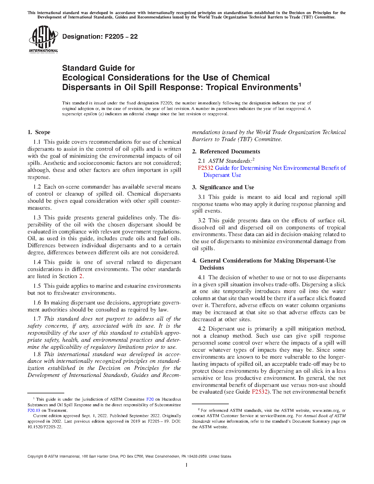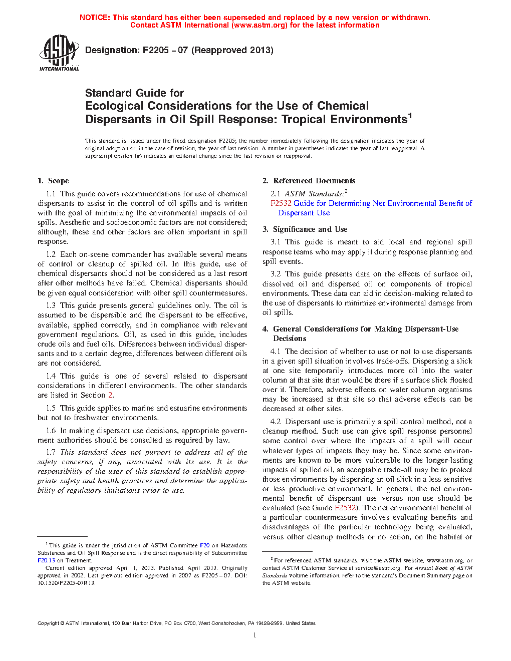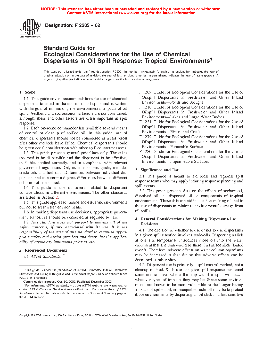 1.4 This guide is one of several related to dispersant considerations in different environments. The other standards are listed in Section 2.