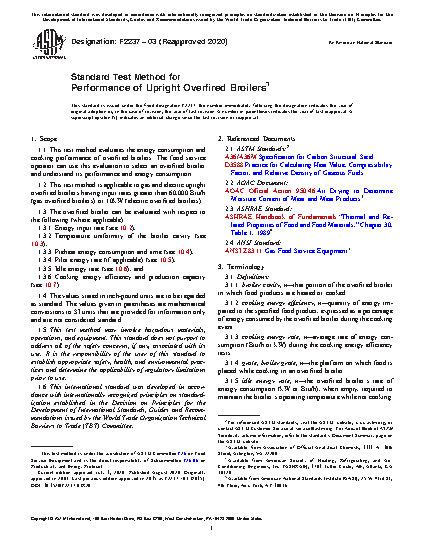 5.6 Production capacity can help an end user to better understand the production capabilities of an overfired broiler as it is used to cook a typical food product, helping with specification of the proper size and quantity of equipment. If production information is desired using a food product other than the specified test food, the test method could be adapted and applied.