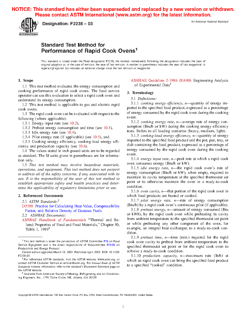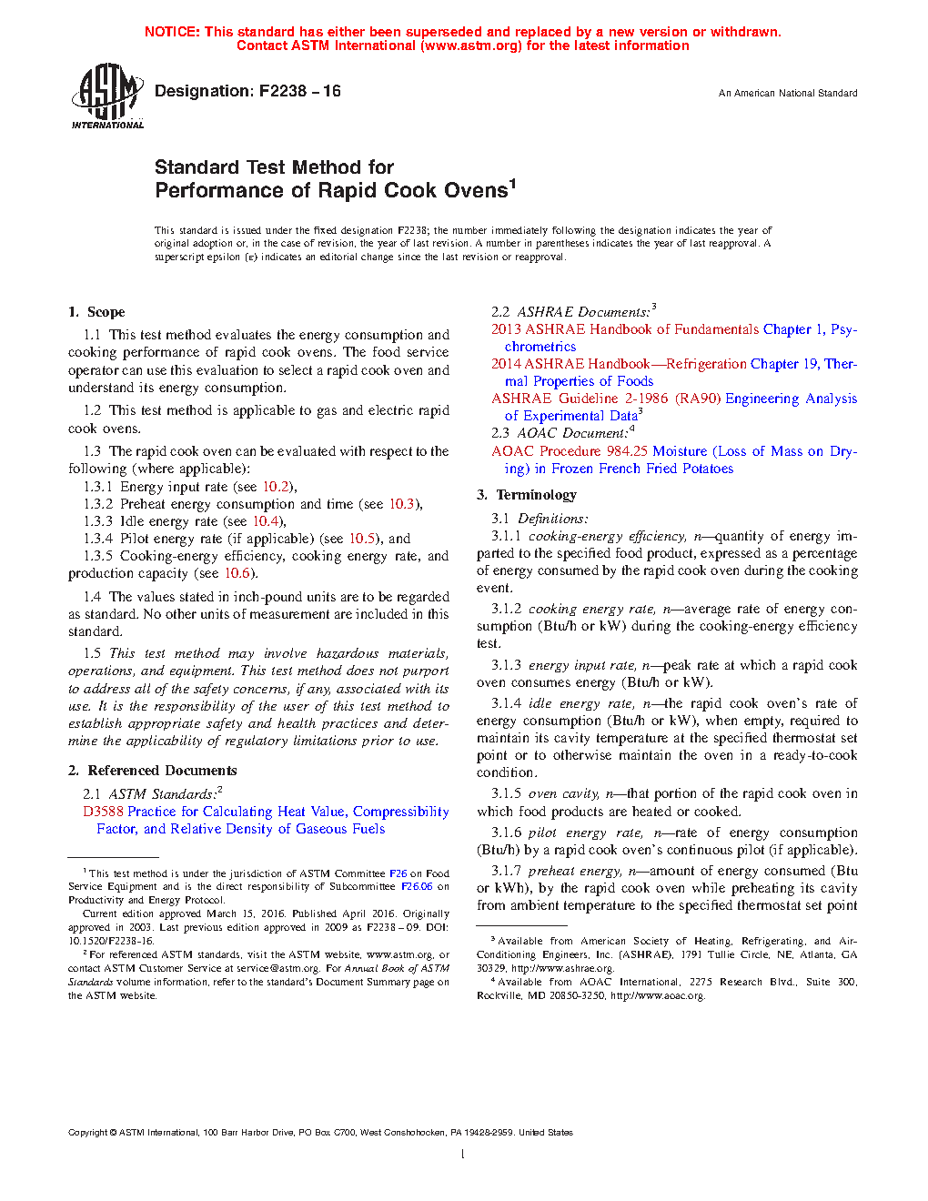 1.2 This test method is applicable to gas and electric rapid cook ovens.