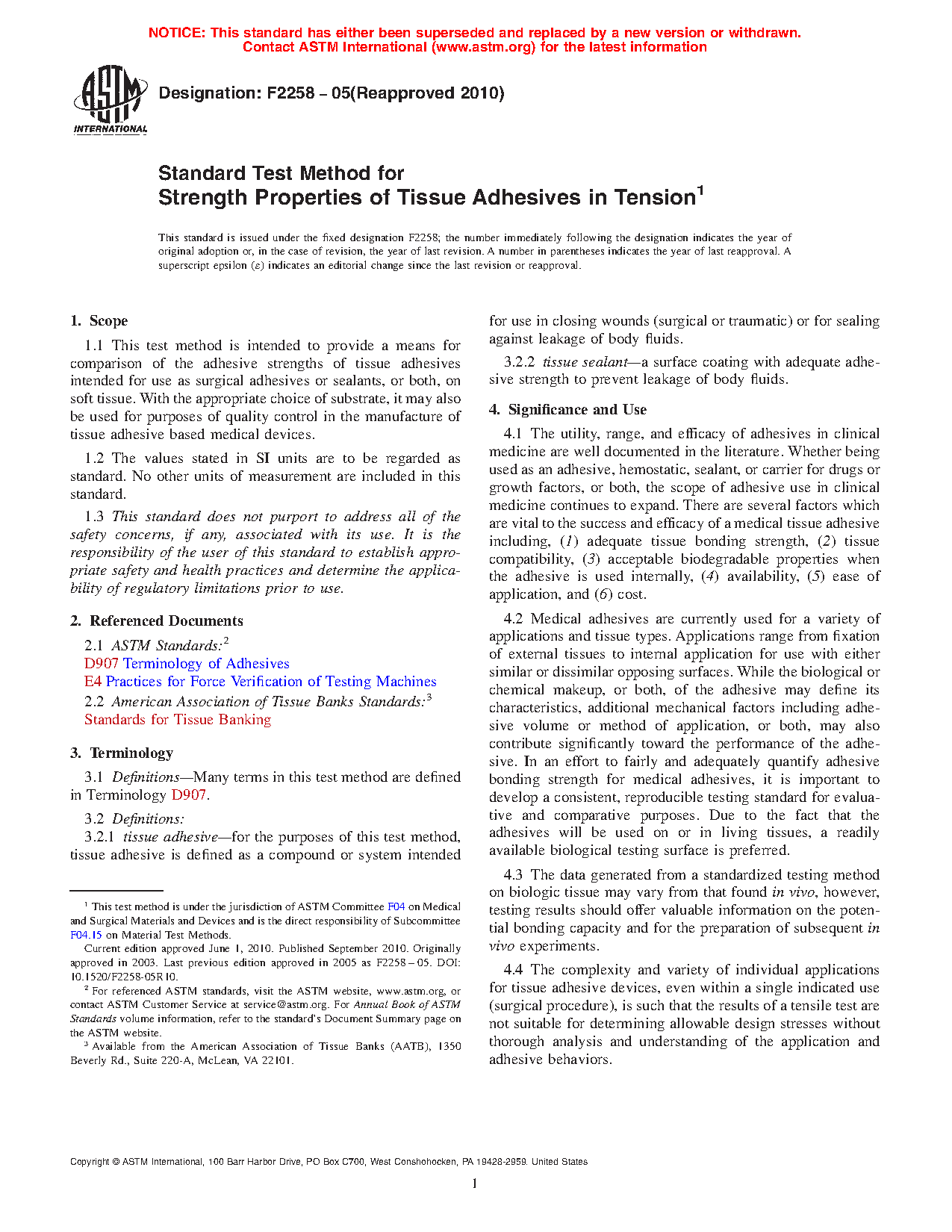 4.4 The complexity and variety of individual applications for tissue adhesive devices, even within a single indicated use (surgical procedure), is such that the results of a tensile test are not suitable for determining allowable design stresses without thorough analysis and understanding of the application and adhesive behaviors.