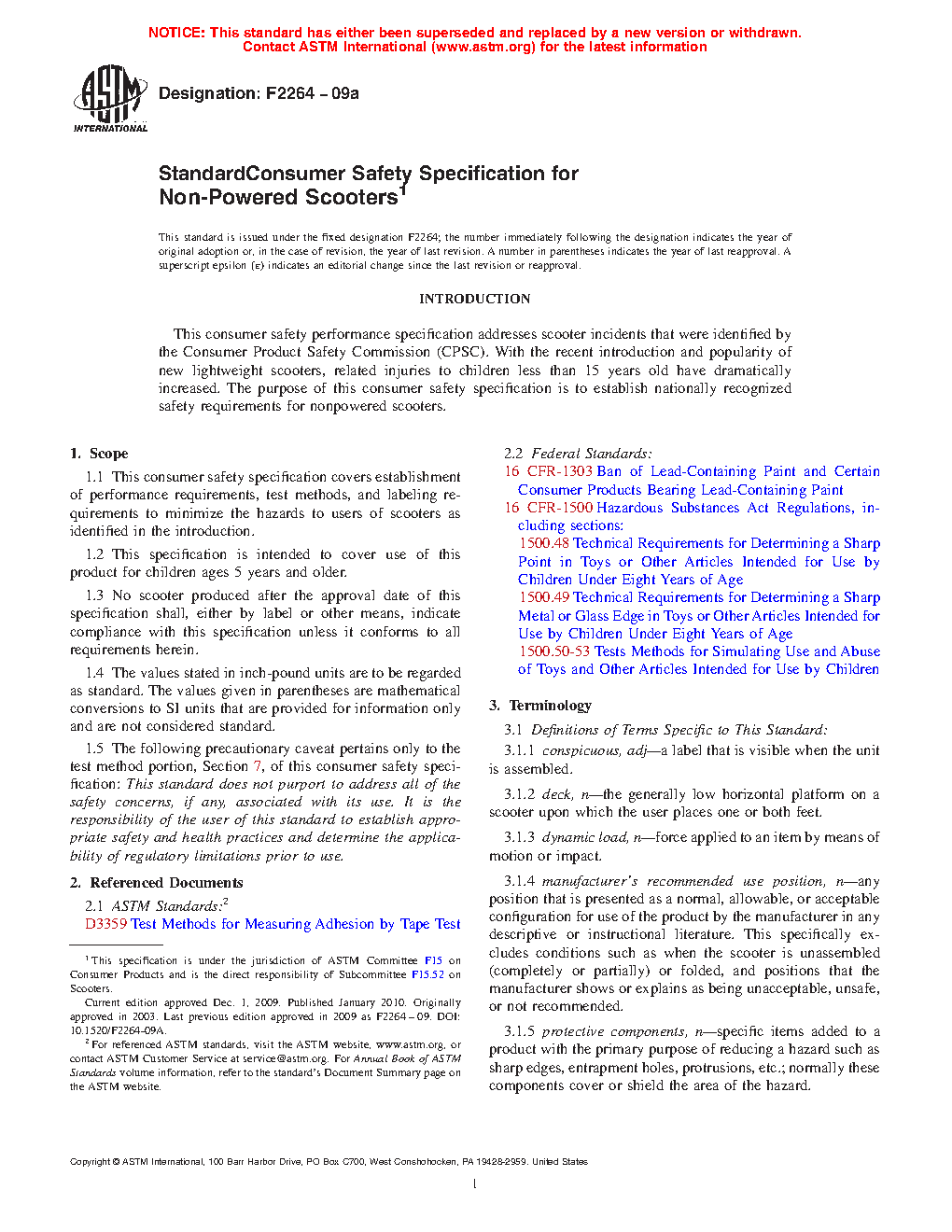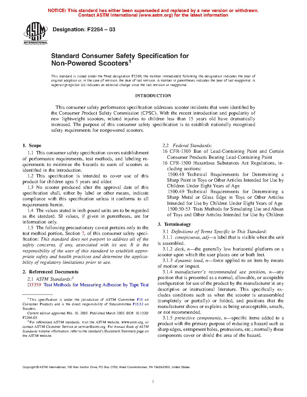 1.3 No scooter produced after the approval date of this specification shall, either by label or other means, indicate compliance with this specification unless it conforms to all requirements herein.