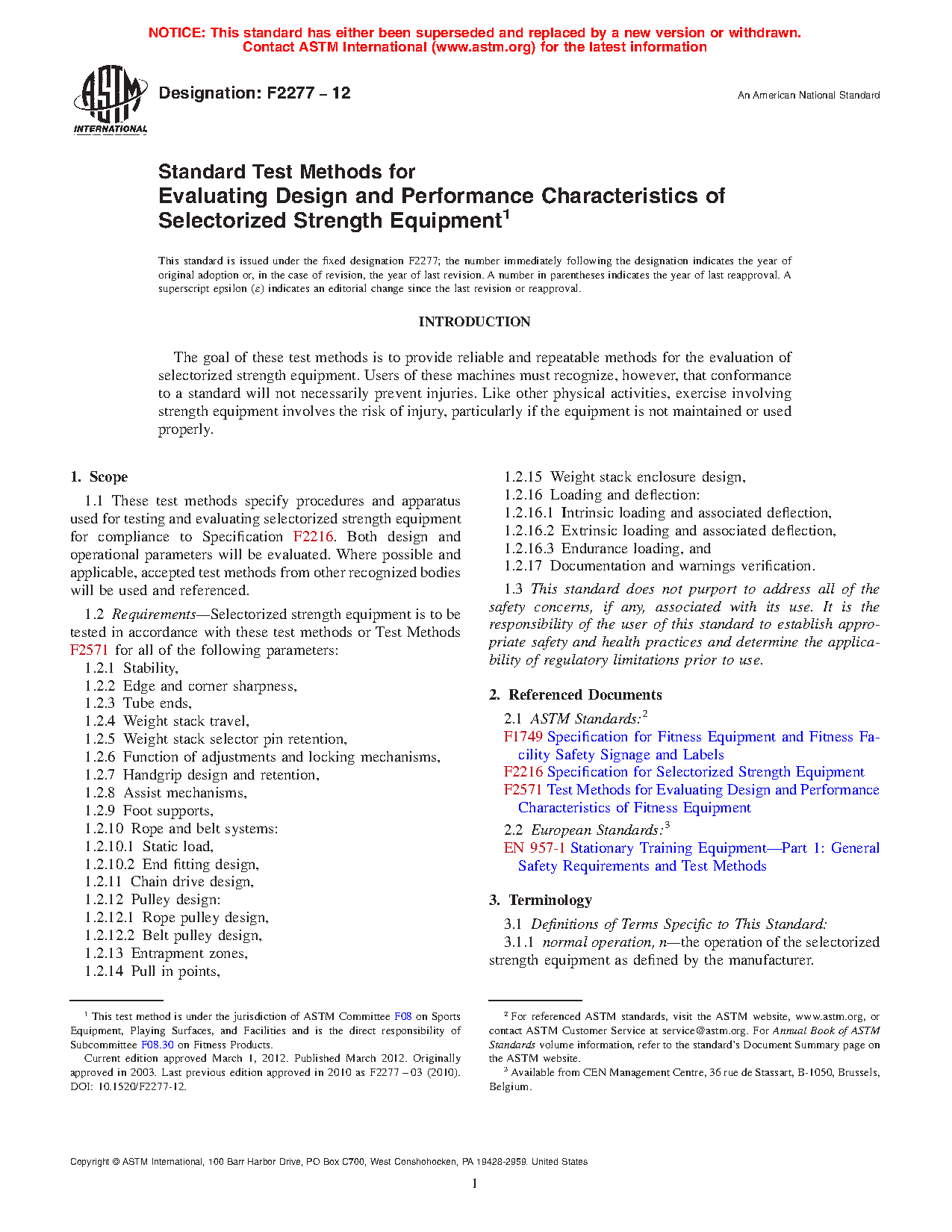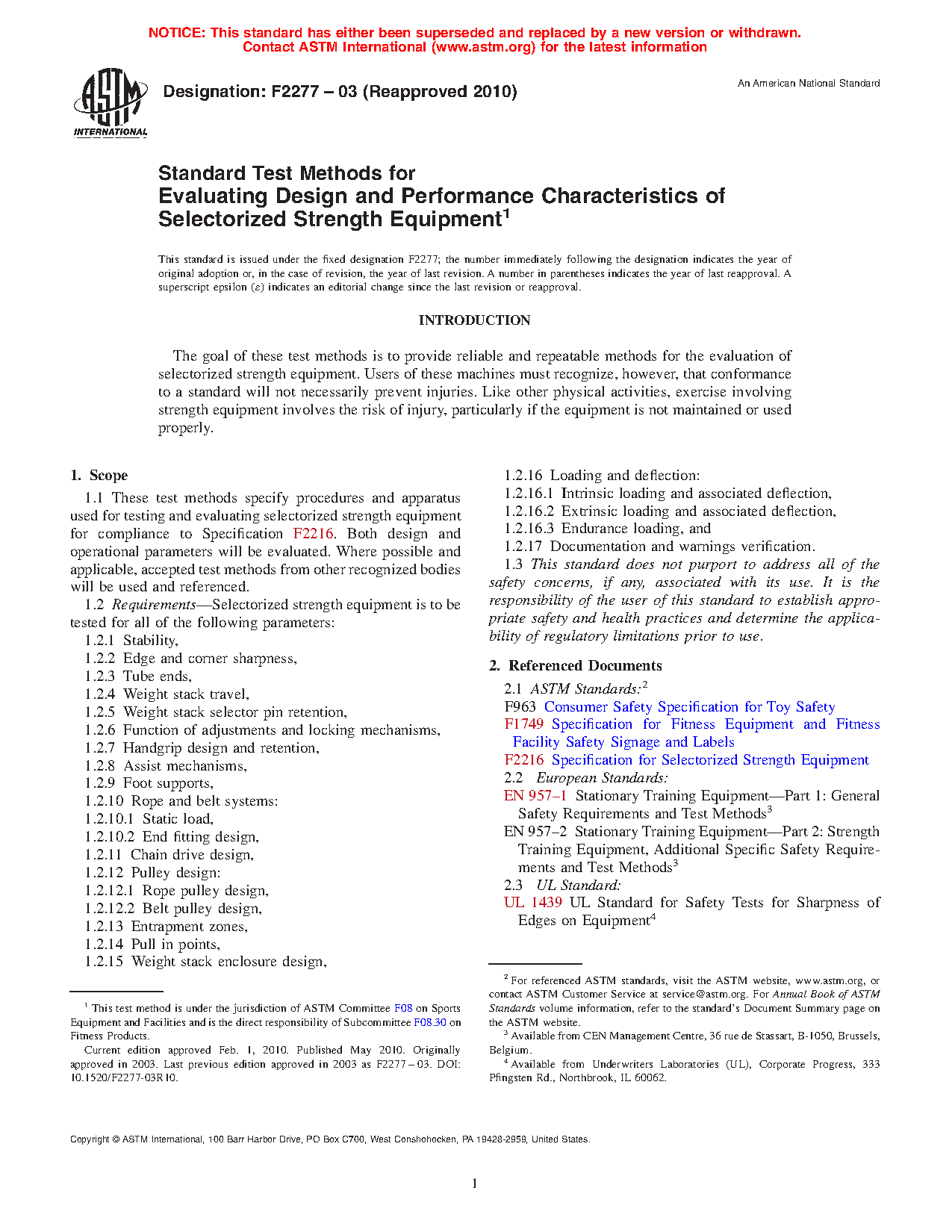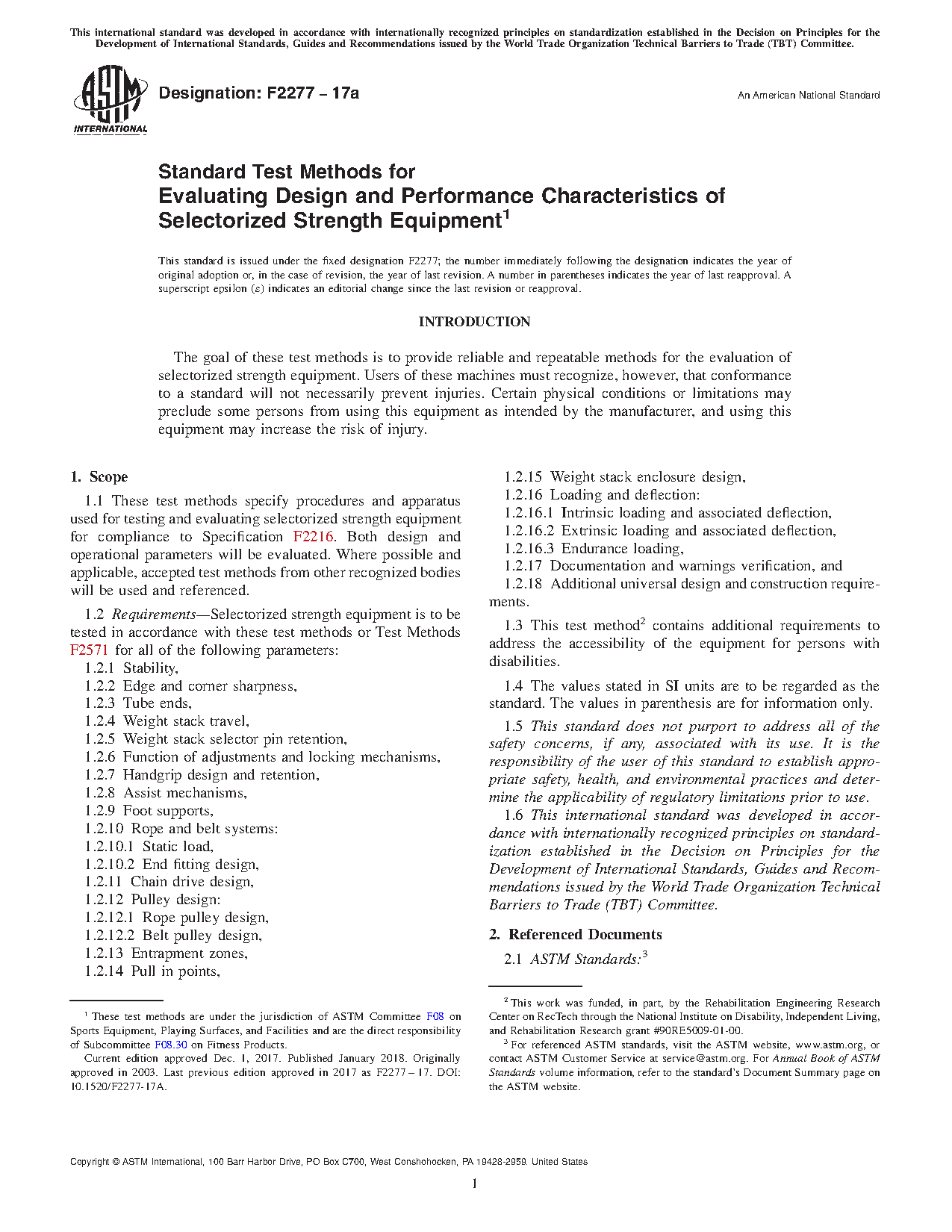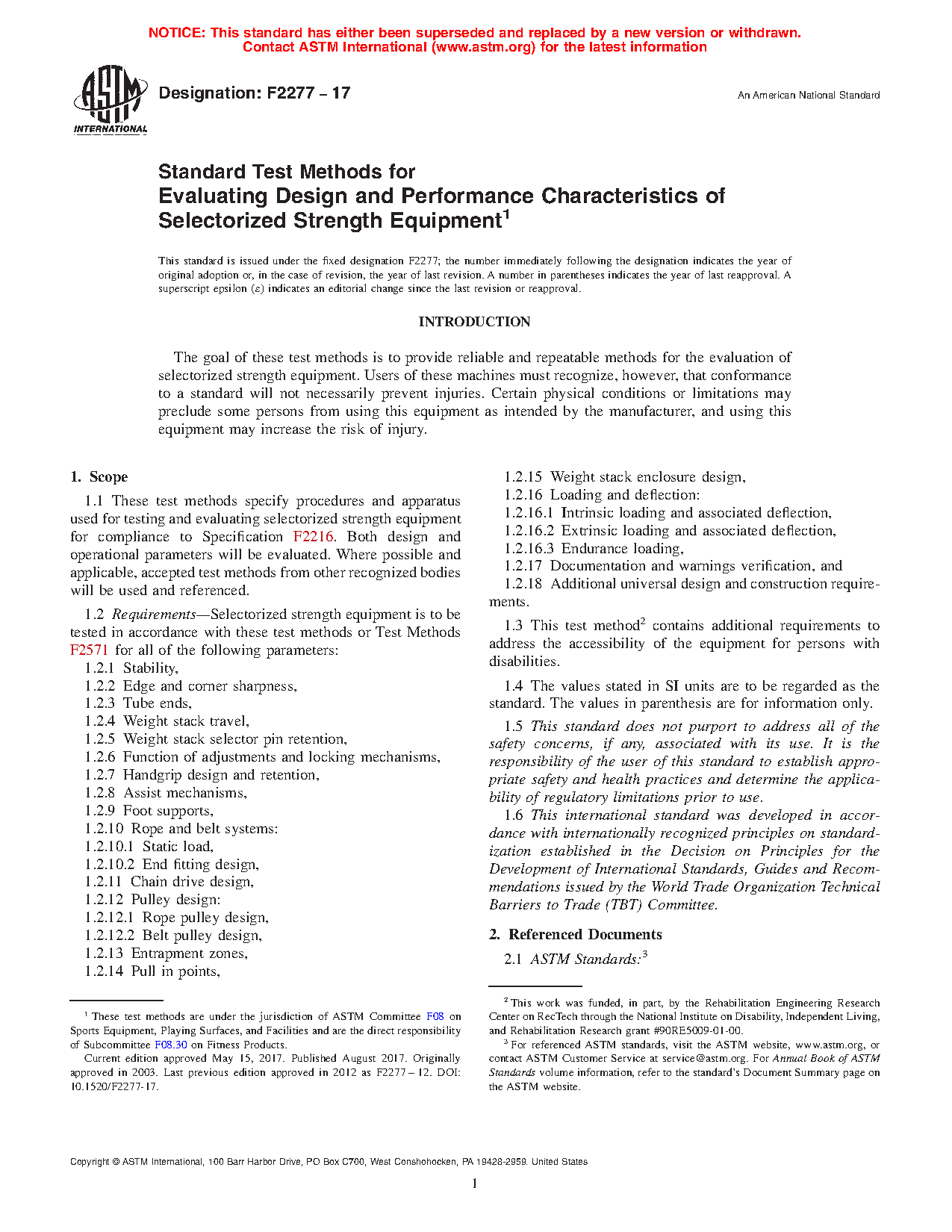 1.2 Requirements—Selectorized strength equipment is to be tested in accordance with these test methods or Test Methods F2571 for all of the following parameters: