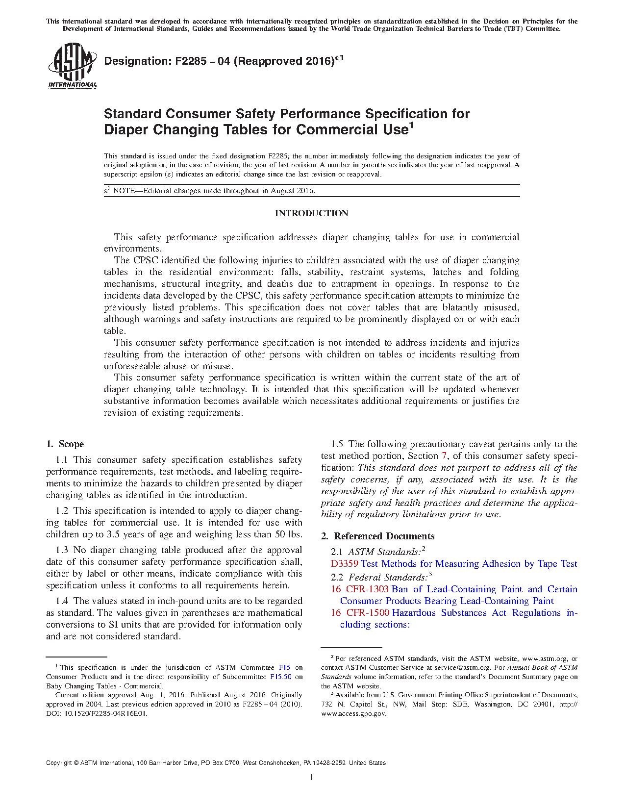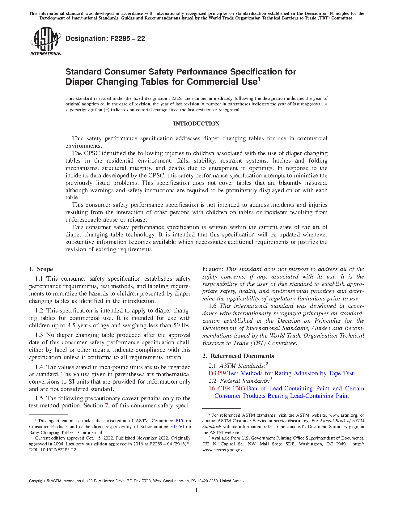 1.3 No diaper changing table produced after the approval date of this consumer safety performance specification shall, either by label or other means, indicate compliance with this specification unless it conforms to all requirements herein.