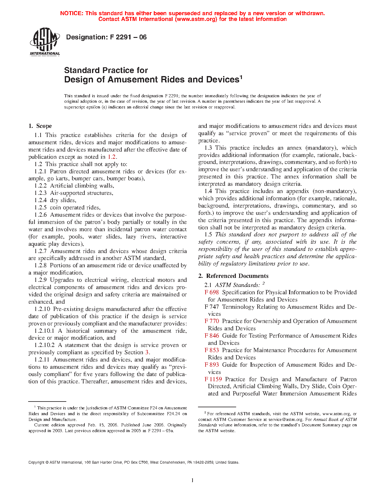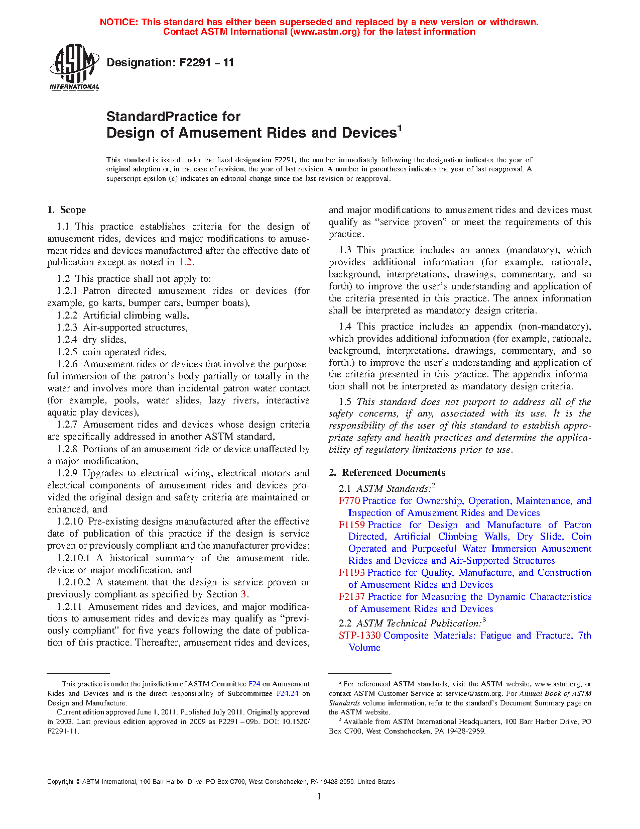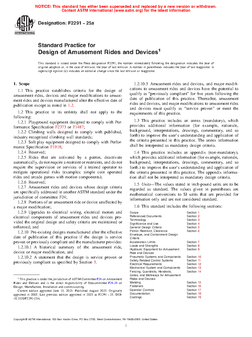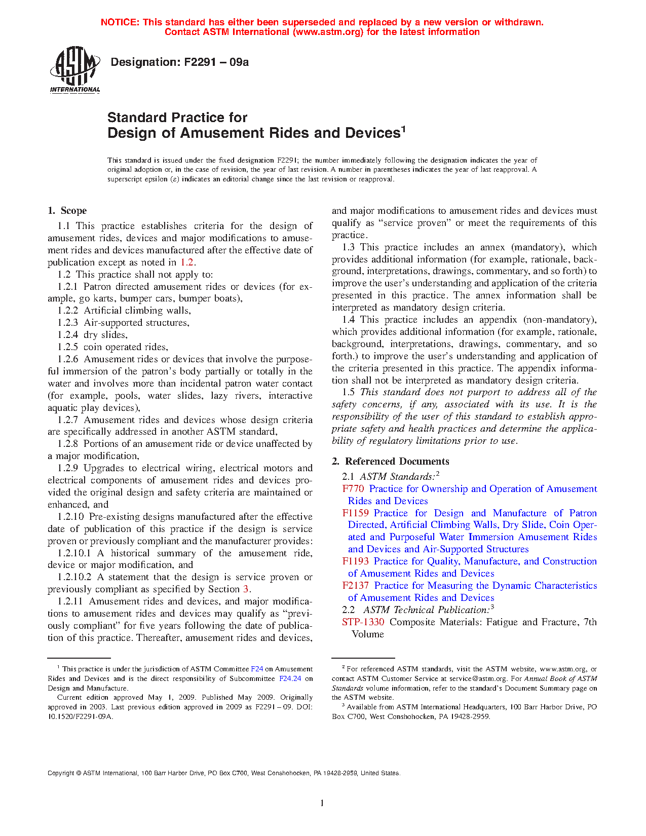 1.1 This practice establishes criteria for the design of amusement rides, devices and major modifications to amusement rides and devices manufactured after the effective date of publication except as noted in 1.2.