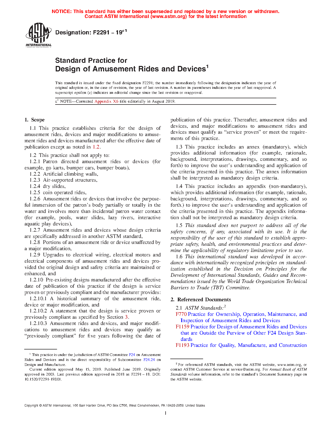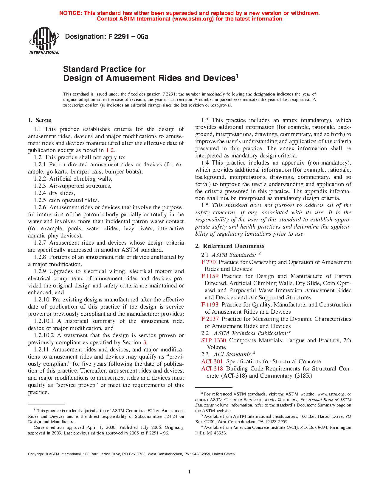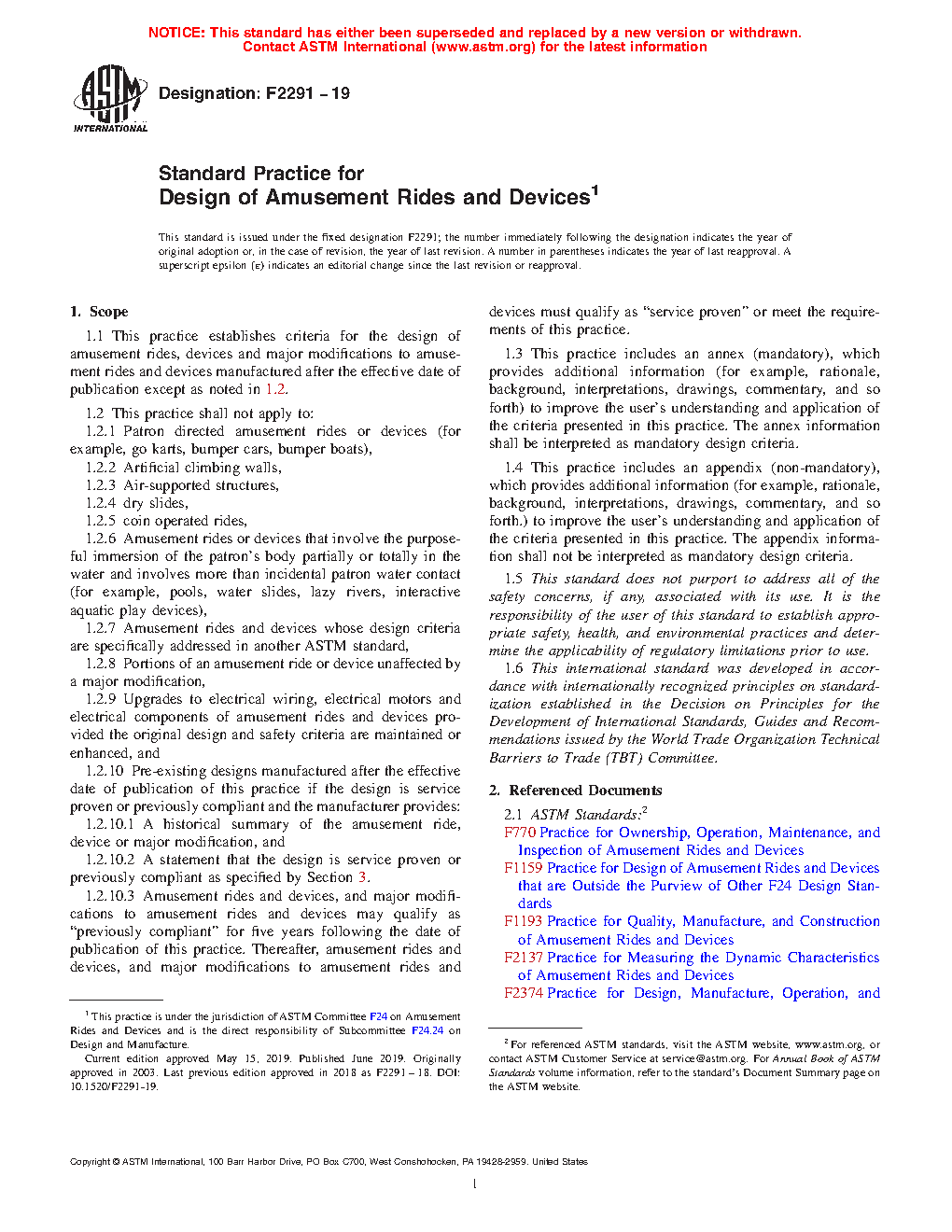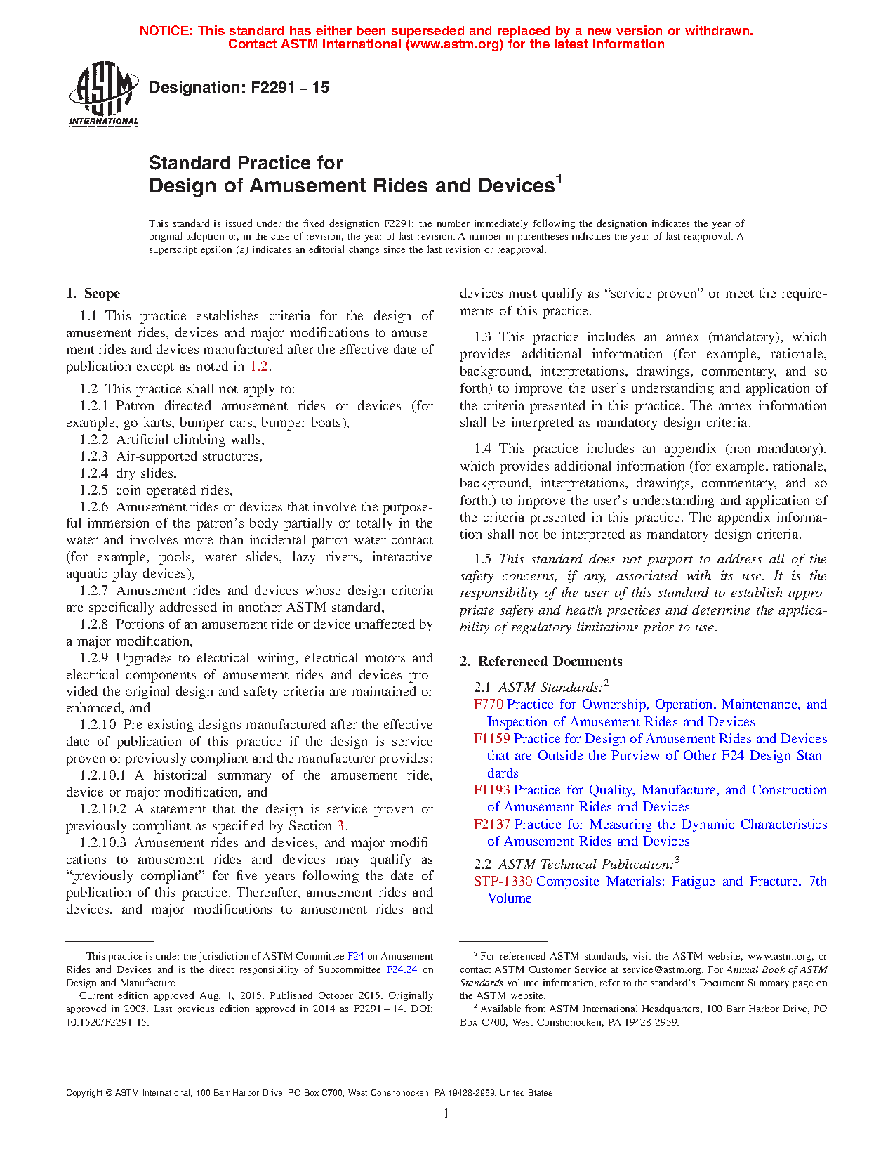 1.1 This practice establishes criteria for the design of amusement rides, devices and major modifications to amusement rides and devices manufactured after the effective date of publication except as noted in 1.2.