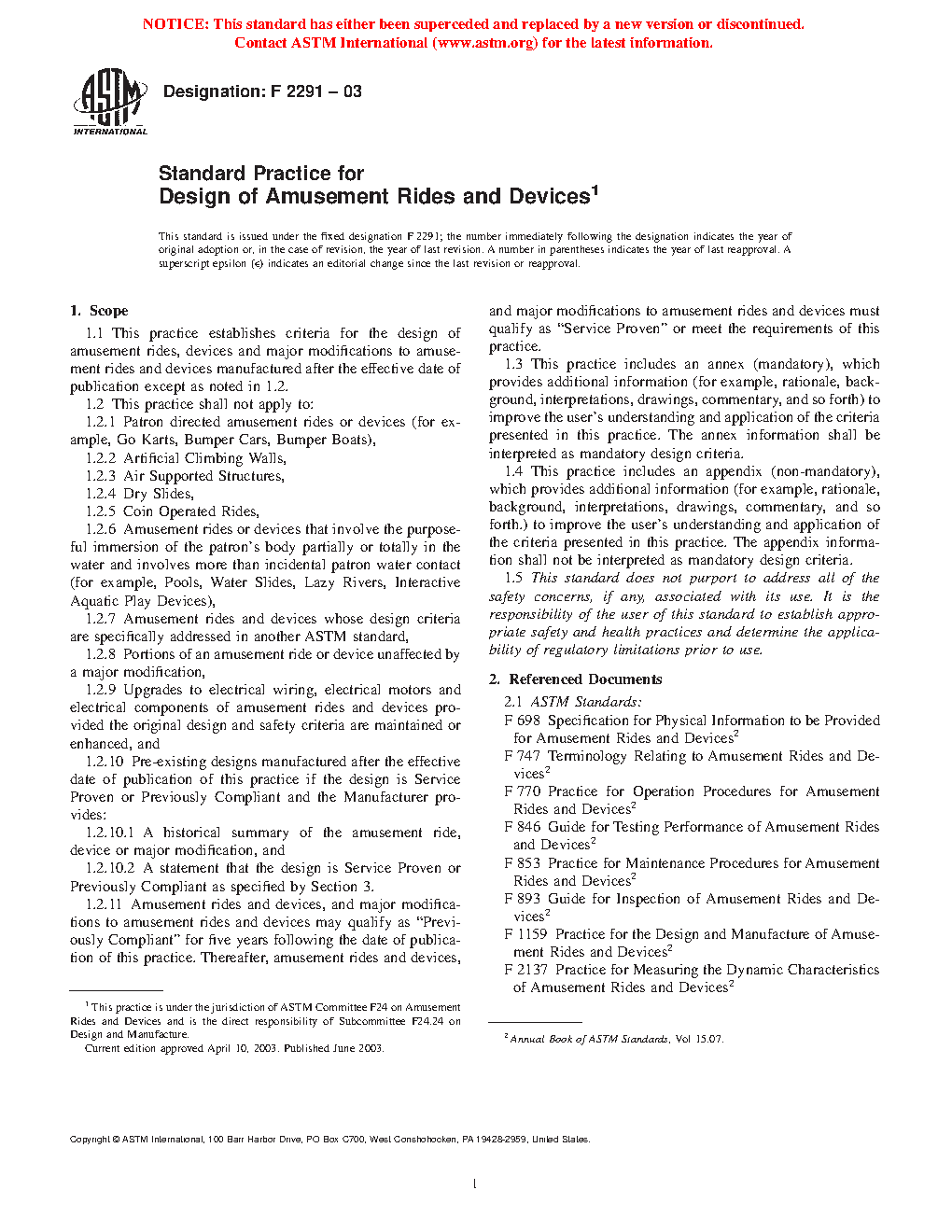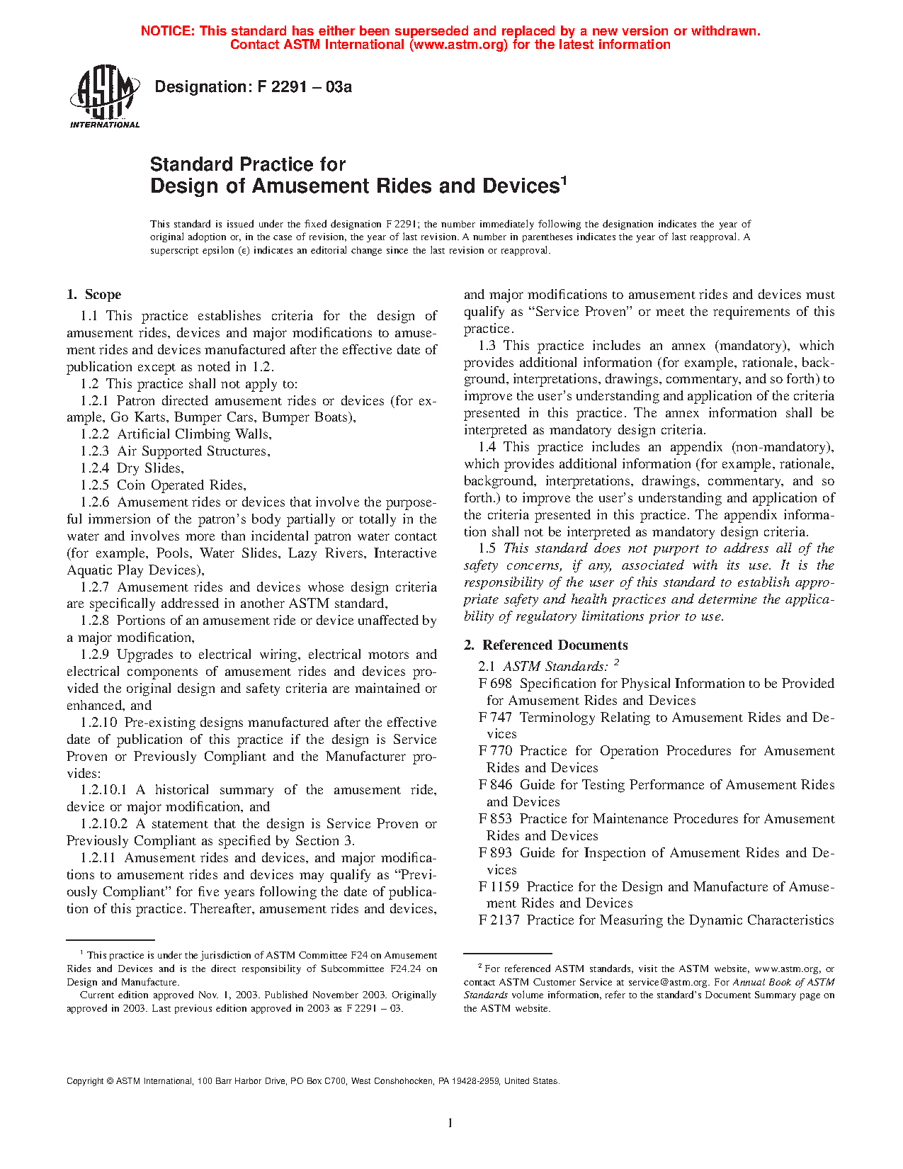 1.2.7 Amusement rides and devices whose design criteria are specifically addressed in another ASTM standard,