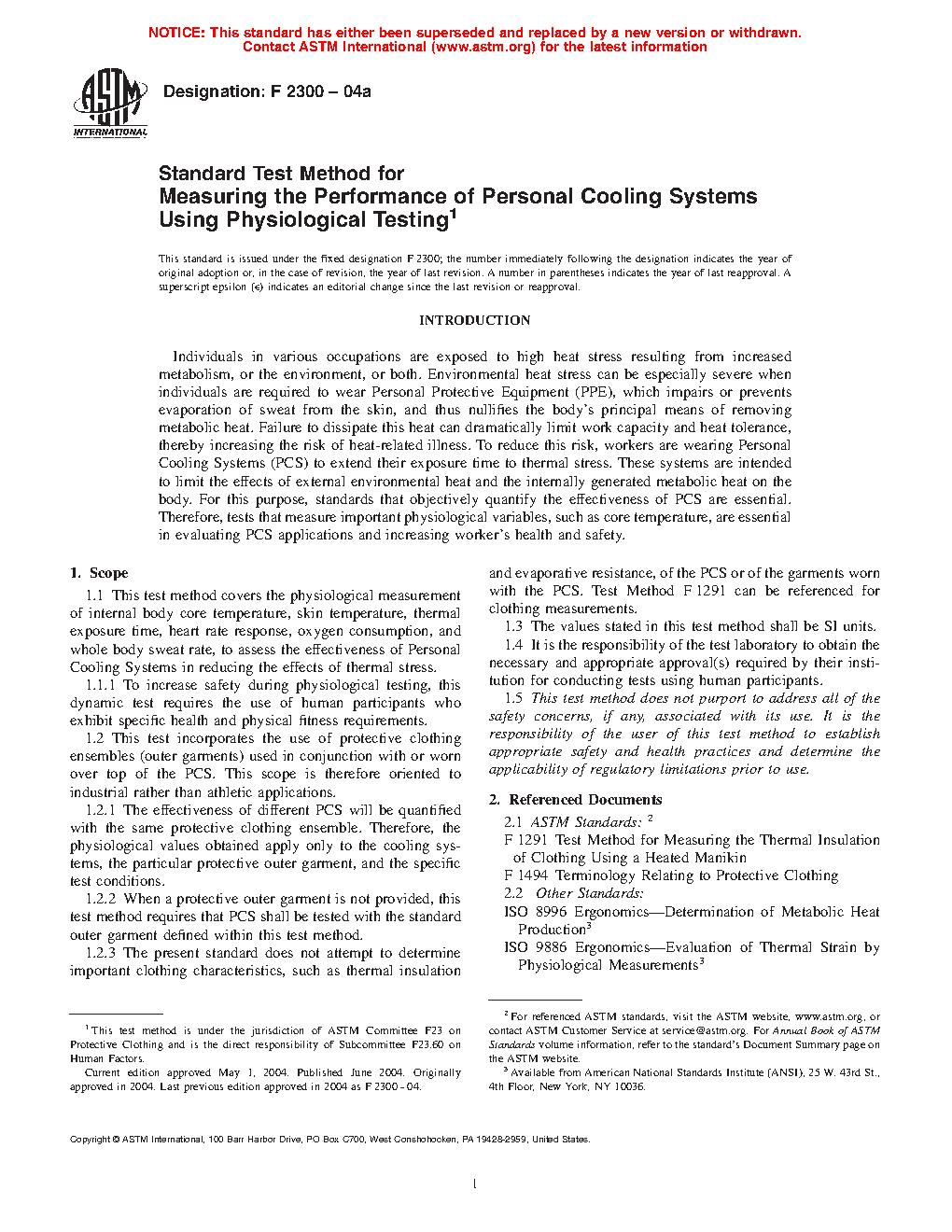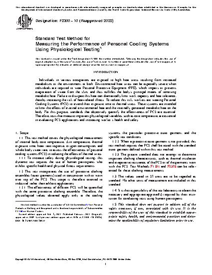 1.2.1 The effectiveness of different PCS will be quantified with the same protective clothing ensemble. Therefore, the physiological values obtained apply only to the cooling systems, the particular protective outer garment, and the specific test conditions.