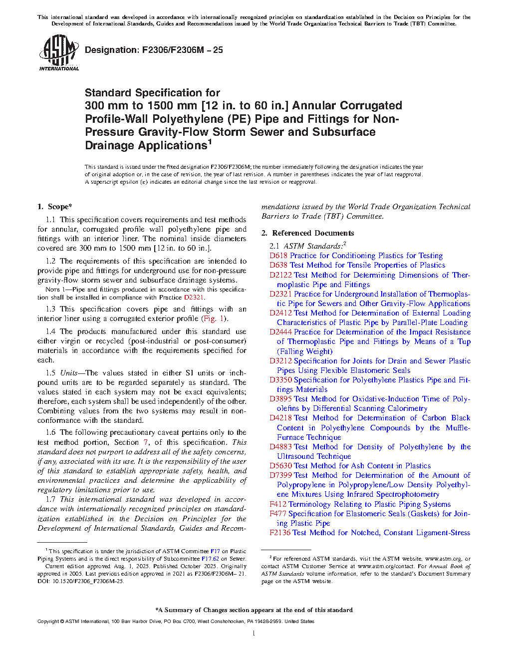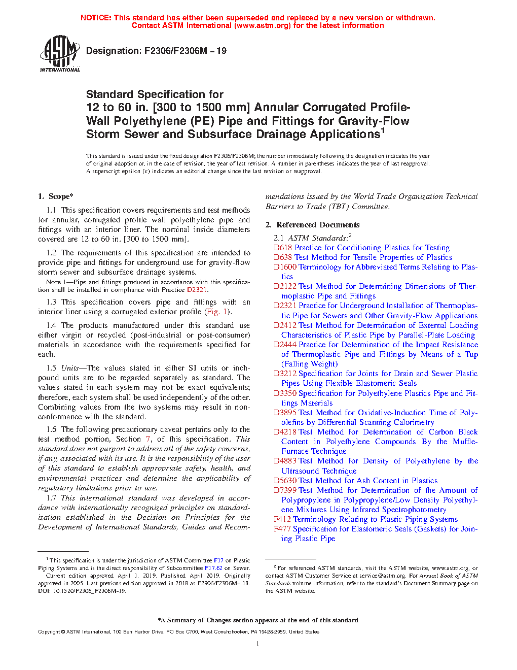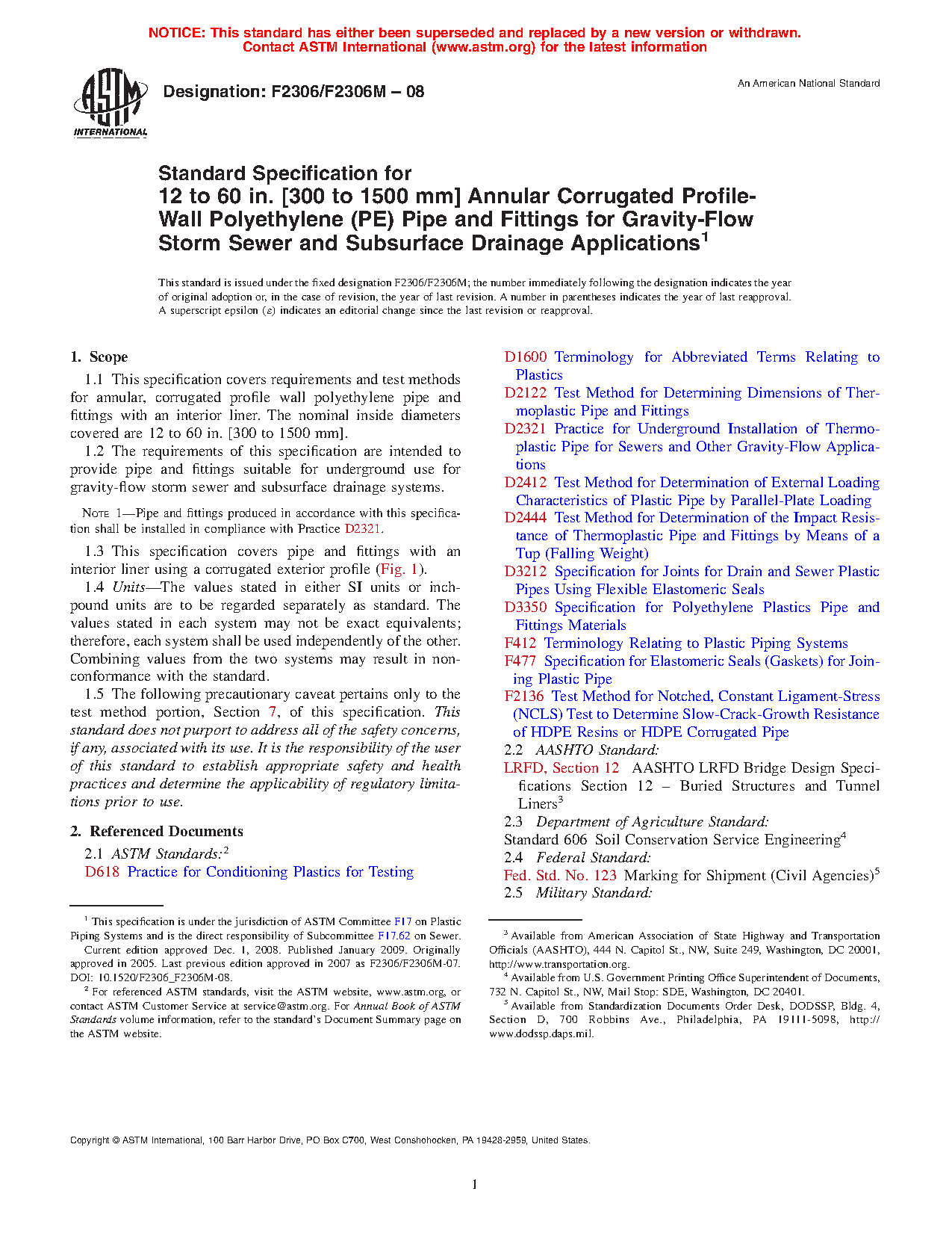 1.2 The requirements of this specification are intended to provide pipe and fittings for underground use for gravity-flow storm sewer and subsurface drainage systems.