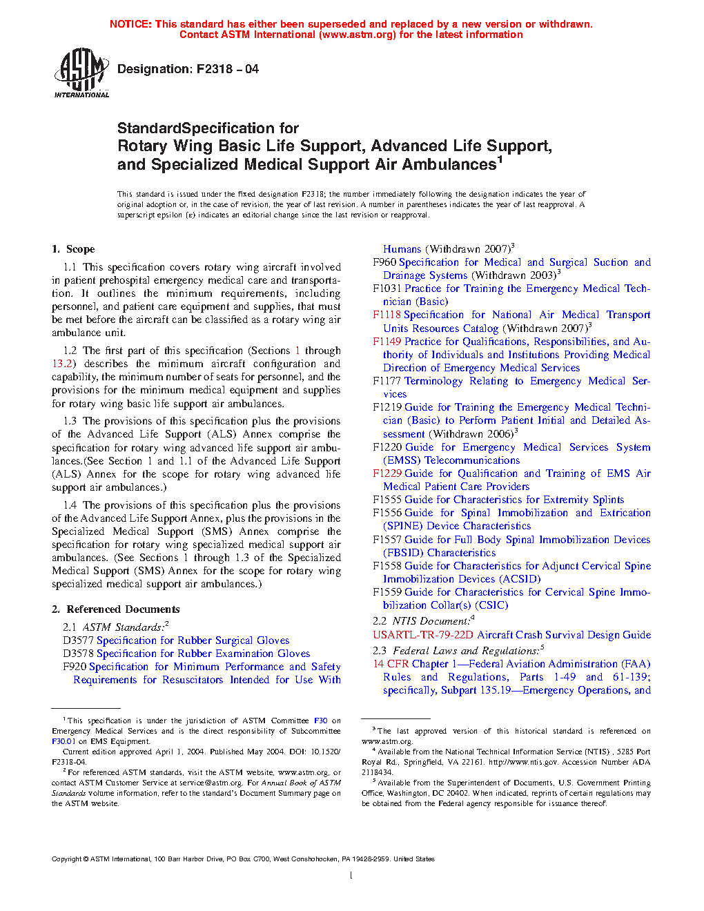 1.3 The provisions of this specification plus the provisions of the Advanced Life Support (ALS) Annex comprise the specification for rotary wing advanced life support air ambulances.(See Section 1 and 1.1 of the Advanced Life Support (ALS) Annex for the scope for rotary wing advanced life support air ambulances.)