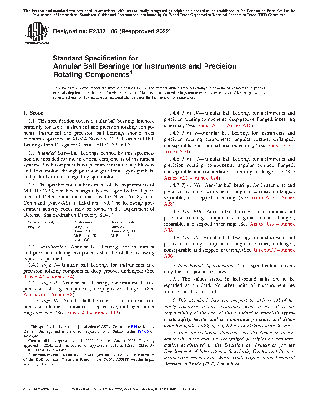 1.4 Classification—Annular ball bearings for instrument and precision rotating components shall be of the following types, as specified: