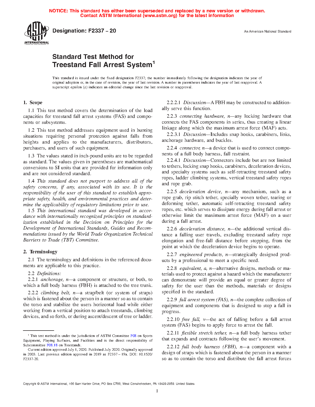 1.2 This test method addresses equipment used in hunting situations requiring personal protection against falls from heights and applies to the manufacturers, distributors, purchasers, and users of such equipment.