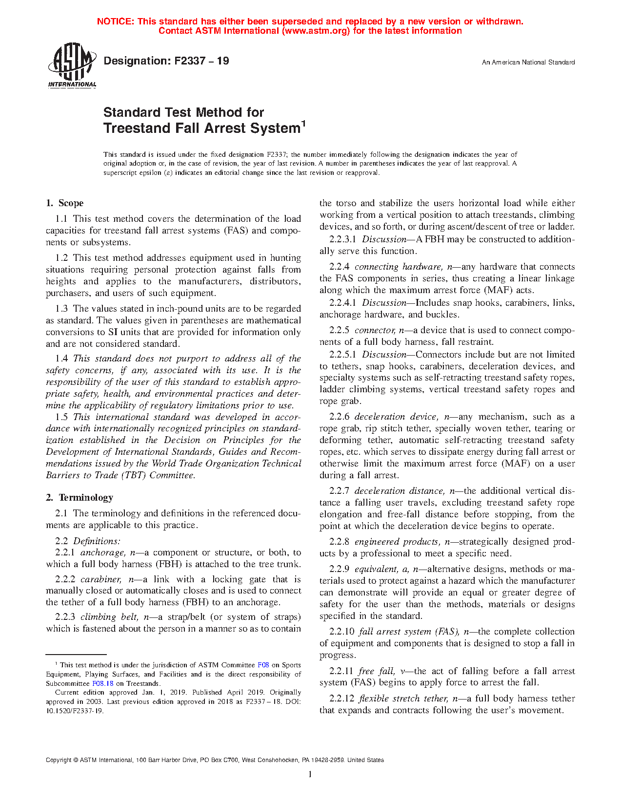 1.2 This test method addresses equipment used in hunting situations requiring personal protection against falls from heights and applies to the manufacturers, distributors, purchasers, and users of such equipment.